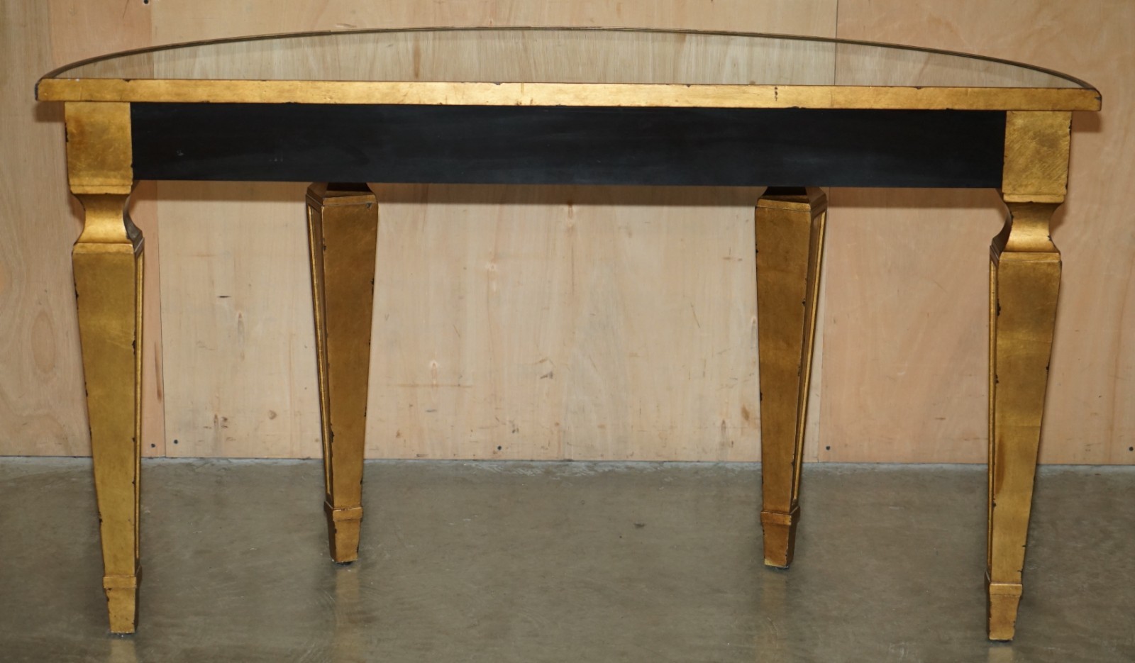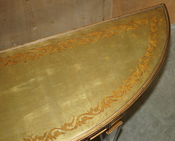 THEODORE ALEXANDER EGLOMISE DEMILUNE CONSOLE TABLE VENETIAN GOLD GILT FINISH
