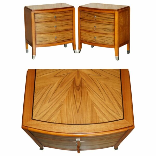 Royal House Antiques is delighted to offer for sale this stunning pair of Robert Idol Designed for Lane Home Furnishings, Walnut & Rosewood night stand or side table sized chest of drawers with Chrome and leather strapped handles which are part of a large suiteĀ