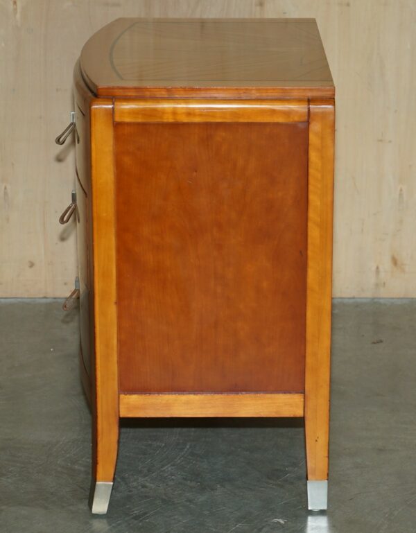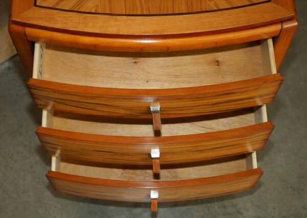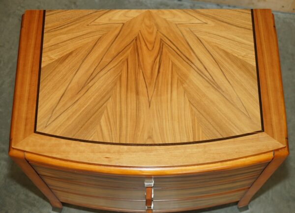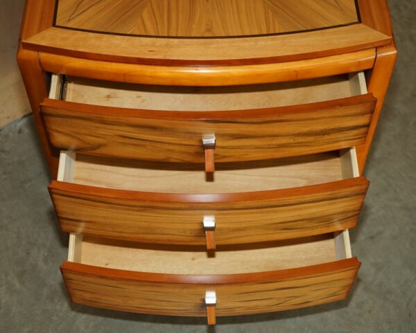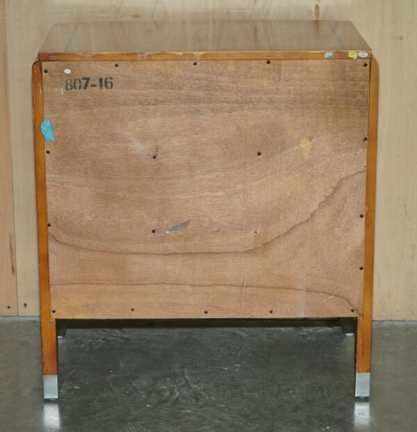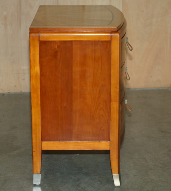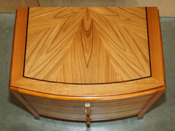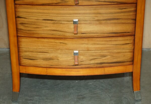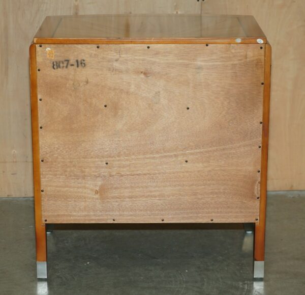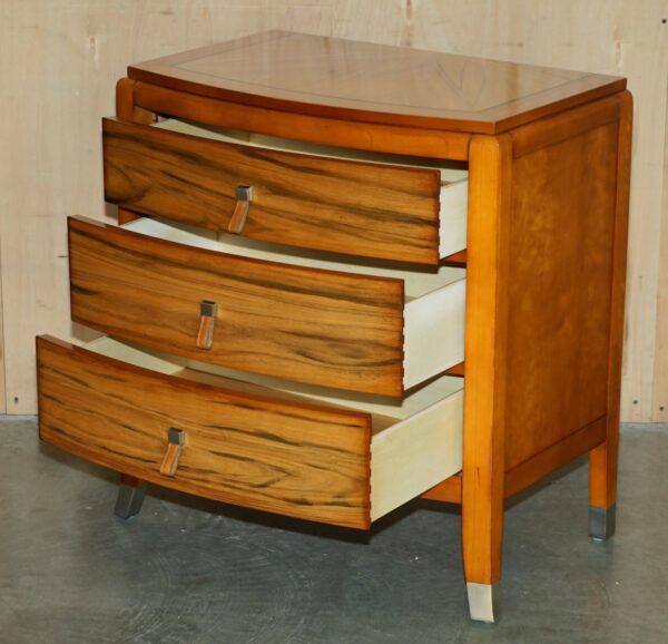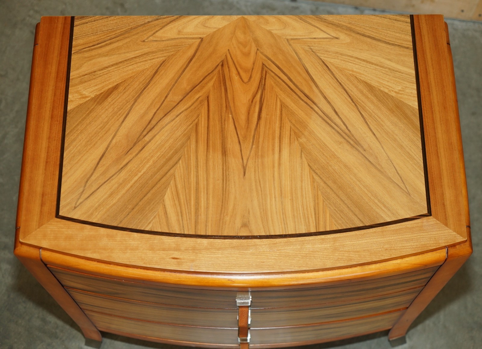 Royal House Antiques is delighted to offer for sale this stunning pair of Robert Idol Designed for Lane Home Furnishings, Walnut & Rosewood night stand or side table sized chest of drawers with Chrome and leather strapped handles which are part of a large suite