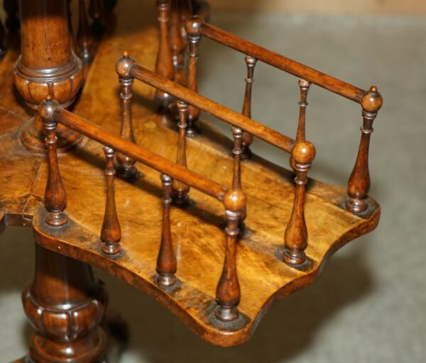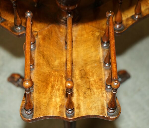 A very good looking, highly collectable and well made table. These were designed as book tables for your favorite author to be displayed. Each shelf rotates, its rare to find it in Burr Walnut, this must have been made by one of the ground furniture houses of the day