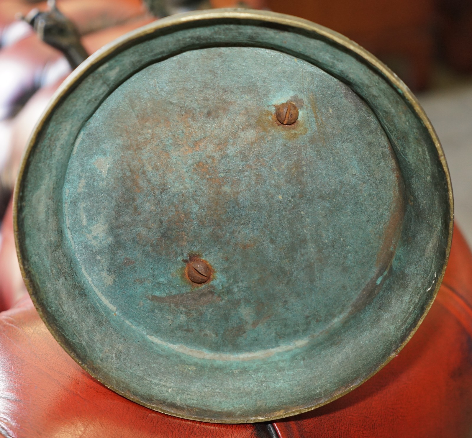The present example is a richly detailed model with extensive carving and articulation of the underlying model; note the rich stylus work in Venus’s hair, the handiwork apparent in the repeating motif around the base and the raised signature of the foundry, which is captured directly from the mold and not simply cold-tooled onto the base.