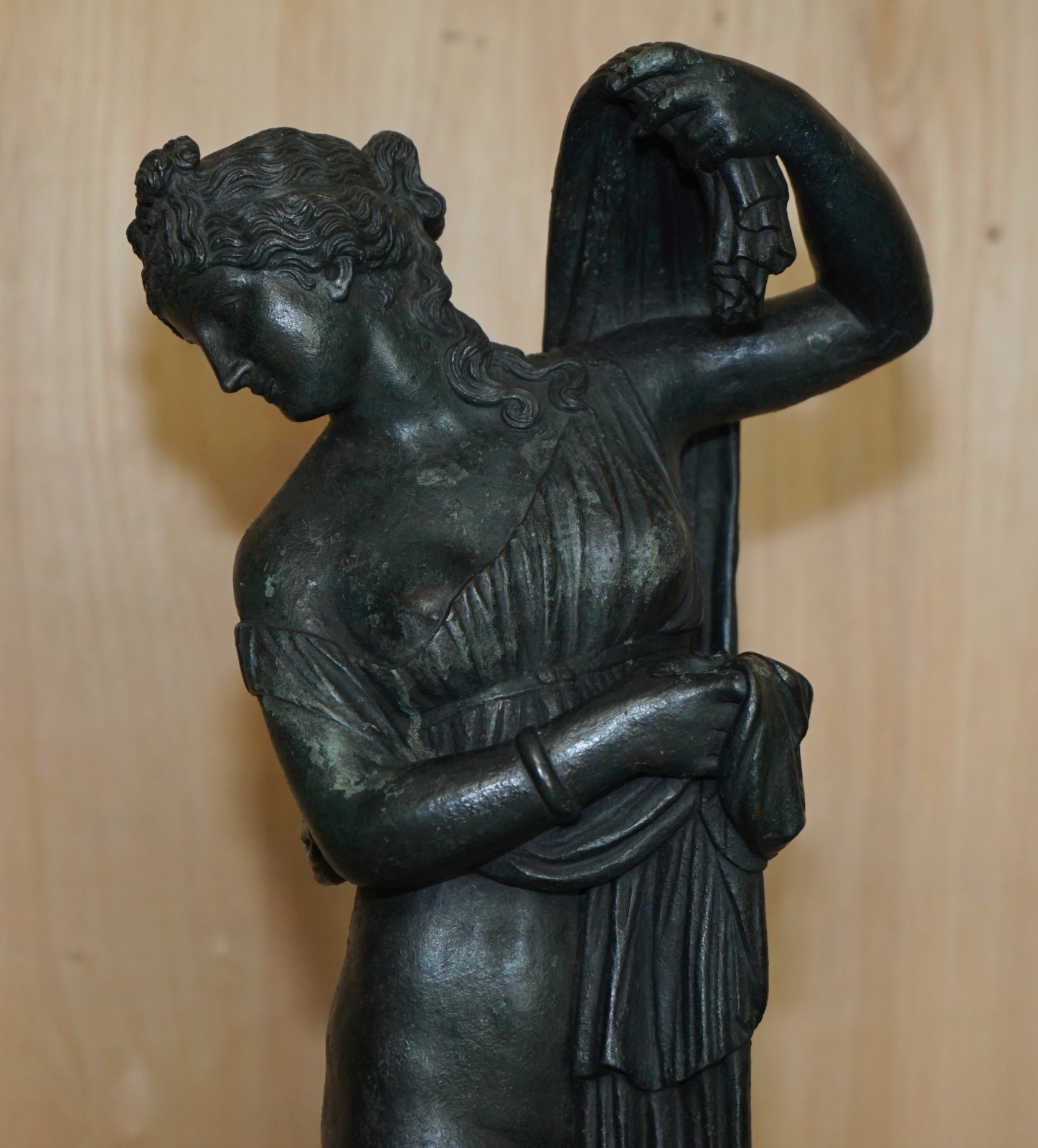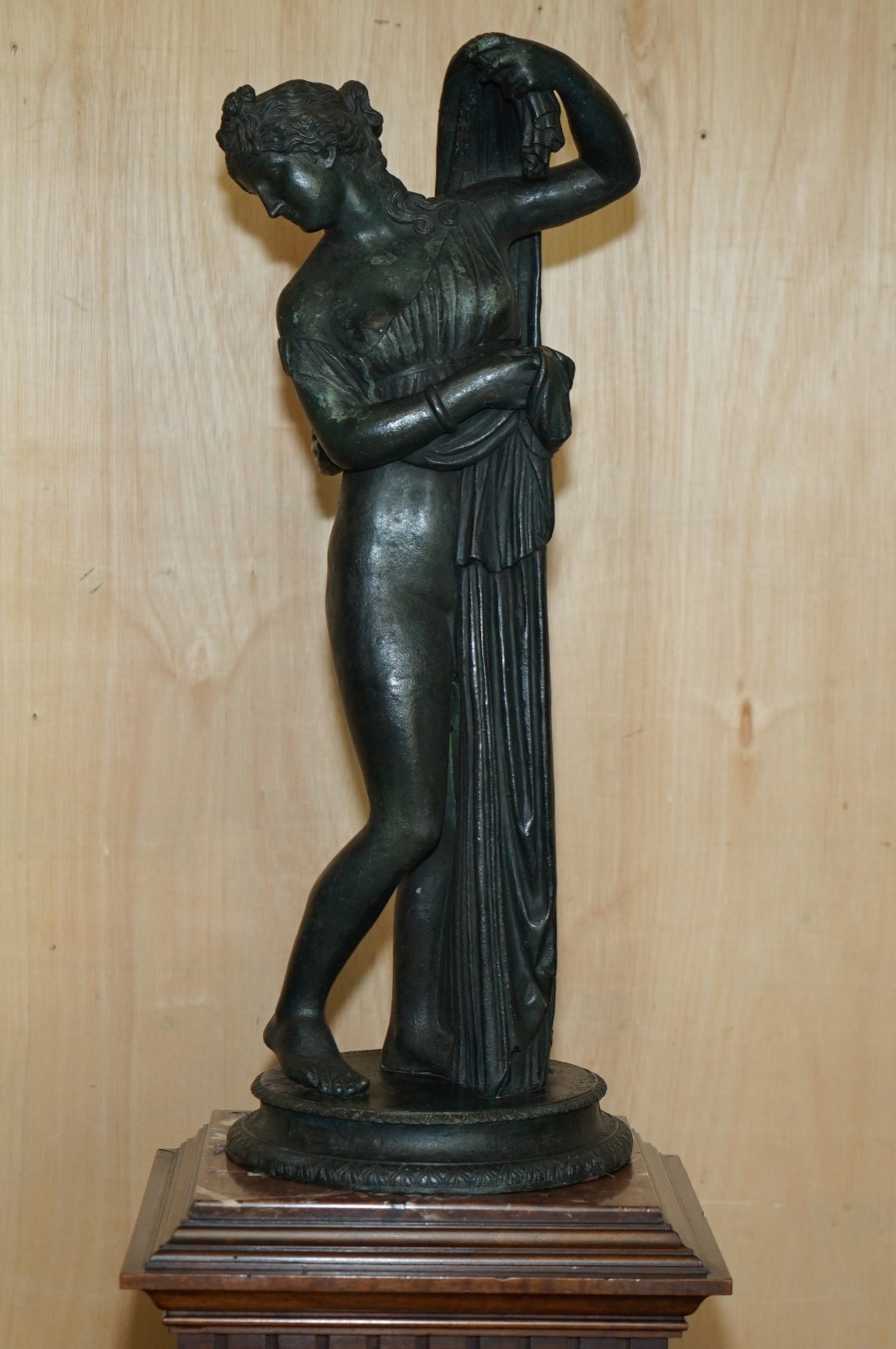 PAIR OF SOMMER FOUNDRY NARCISSUS & VENUS CALLIPYGIAN BRONZE STATUES & PEDESTALS