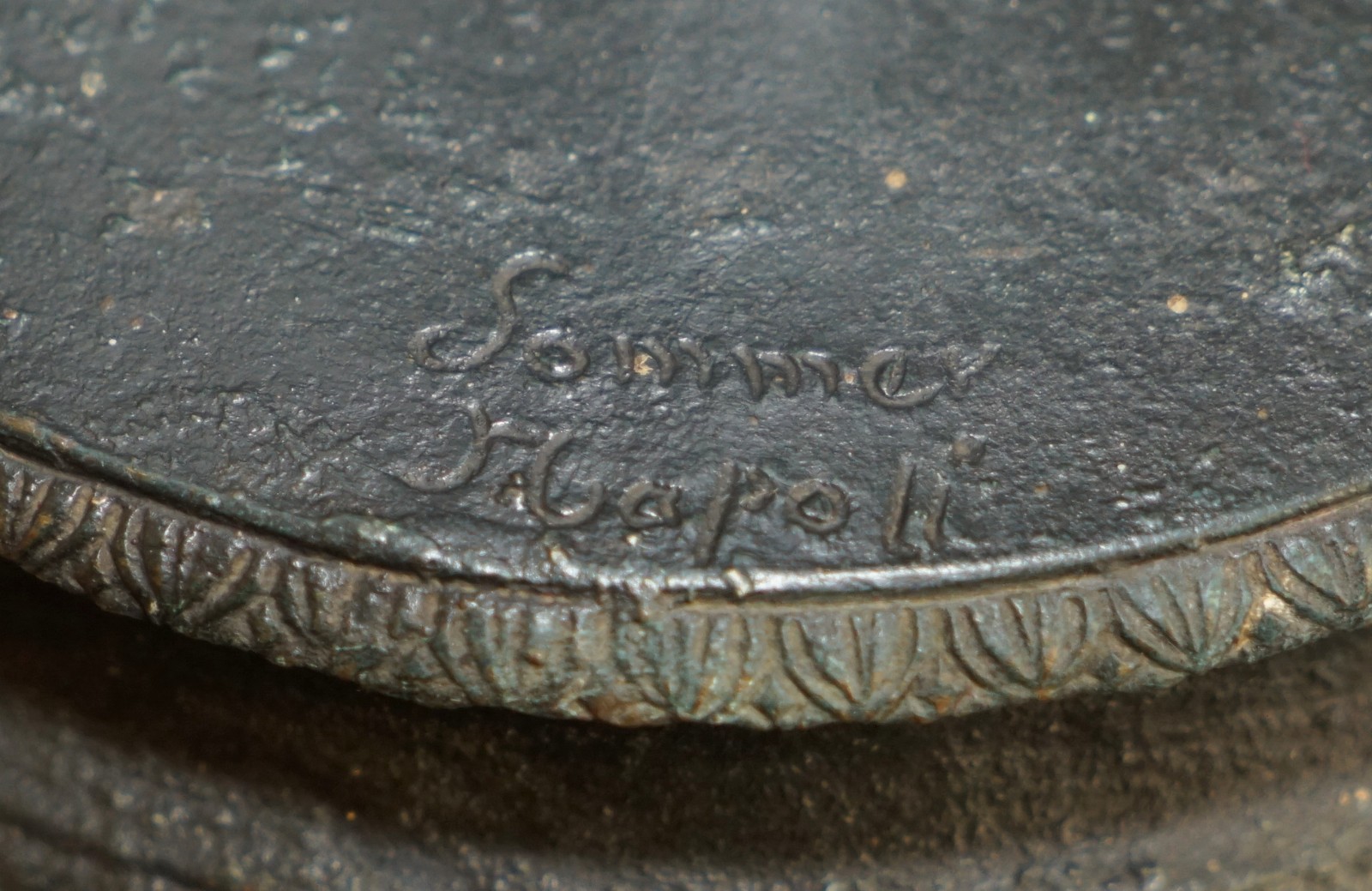 Giorgio Sommer was a German photographer who spent most of his career in Italy, moving to Naples in 1857 where he first established his photography business. At some point thereafter he opened the foundry, which was rather successful, likely due to the very fine quality of output the firm produced. While most records show the foundry opened in 1885, sources suggest they were producing sculpture early in the 1870s before exhibiting in 1885. Thereafter they produced illustrated catalogues of their sculpture for marketing and distribution. He died in 1914 and the foundry survived him only two years before closing its doors in 1916.