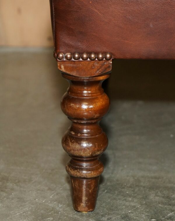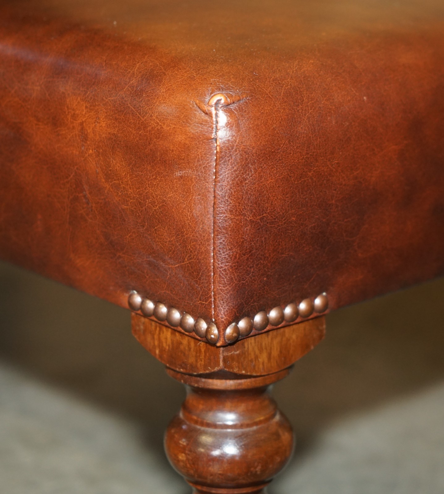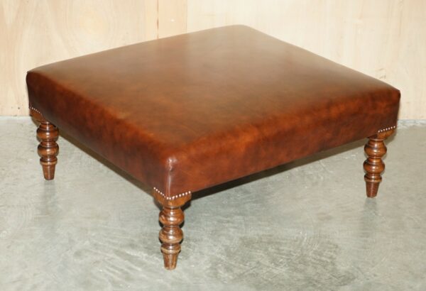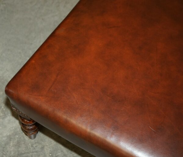 LOVELY VINTAGE HAND DYED BROWN LEATHER GEORGE SMITH LARGE 2 PERSON FOOTSTOOL