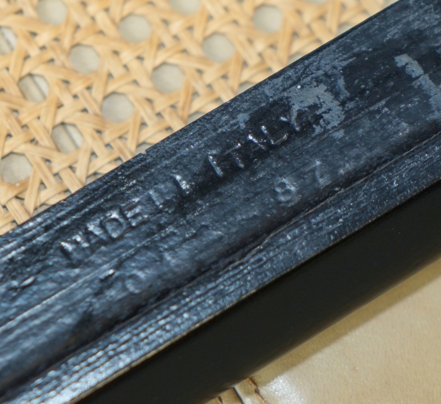 These chairs have the stamps to the base as mentioned, they read 04 87 for April 1987 and Made in Italy, they are nearly 40 years old and quickly becoming solid vintage examples