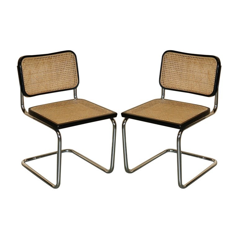PAIR OF VINTAGE 1987 MADE IN ITALY STAMPED MARCEL BREUER CESCA KNOLL B32 CHAIRS