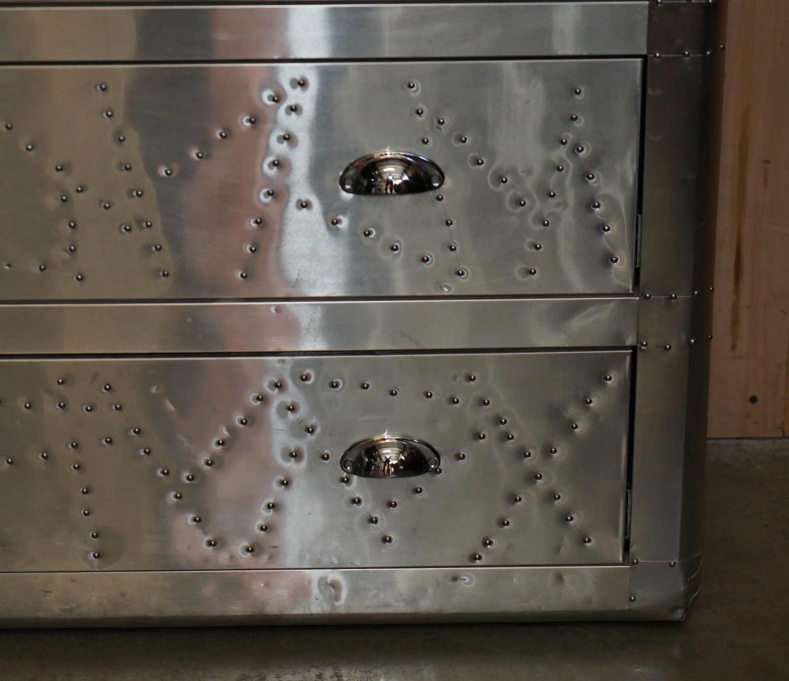 COOL PAIR OF VINTAGE AVIATOR HAND HAMMERED CHEST OF DRAWERS INDUSTRIAL STYLE