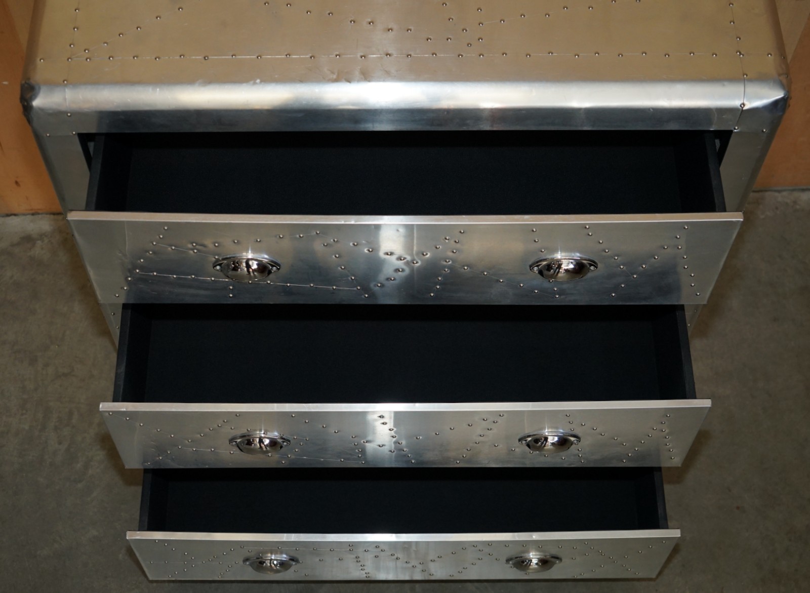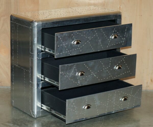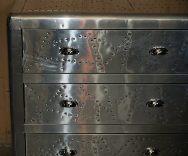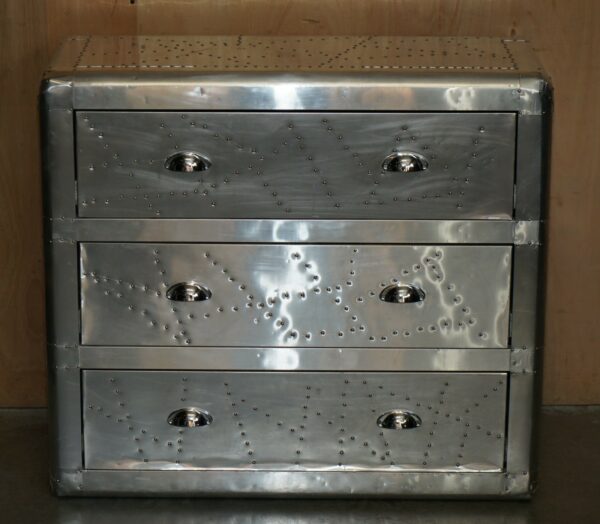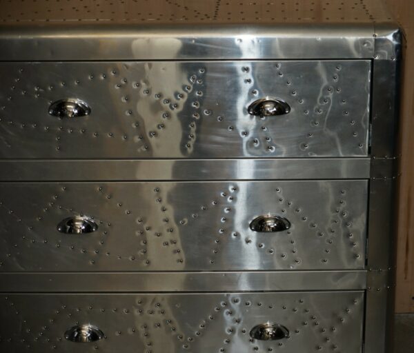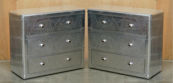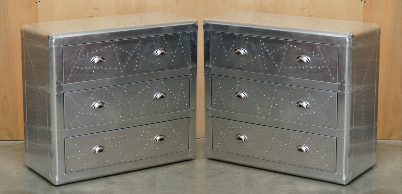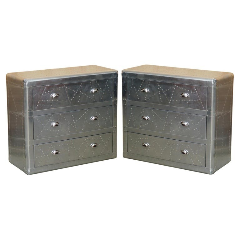 Royal House Antiques is delighted to offer for sale this lovely pair of vintage hammed Aluminum Aviator style chests of drawers