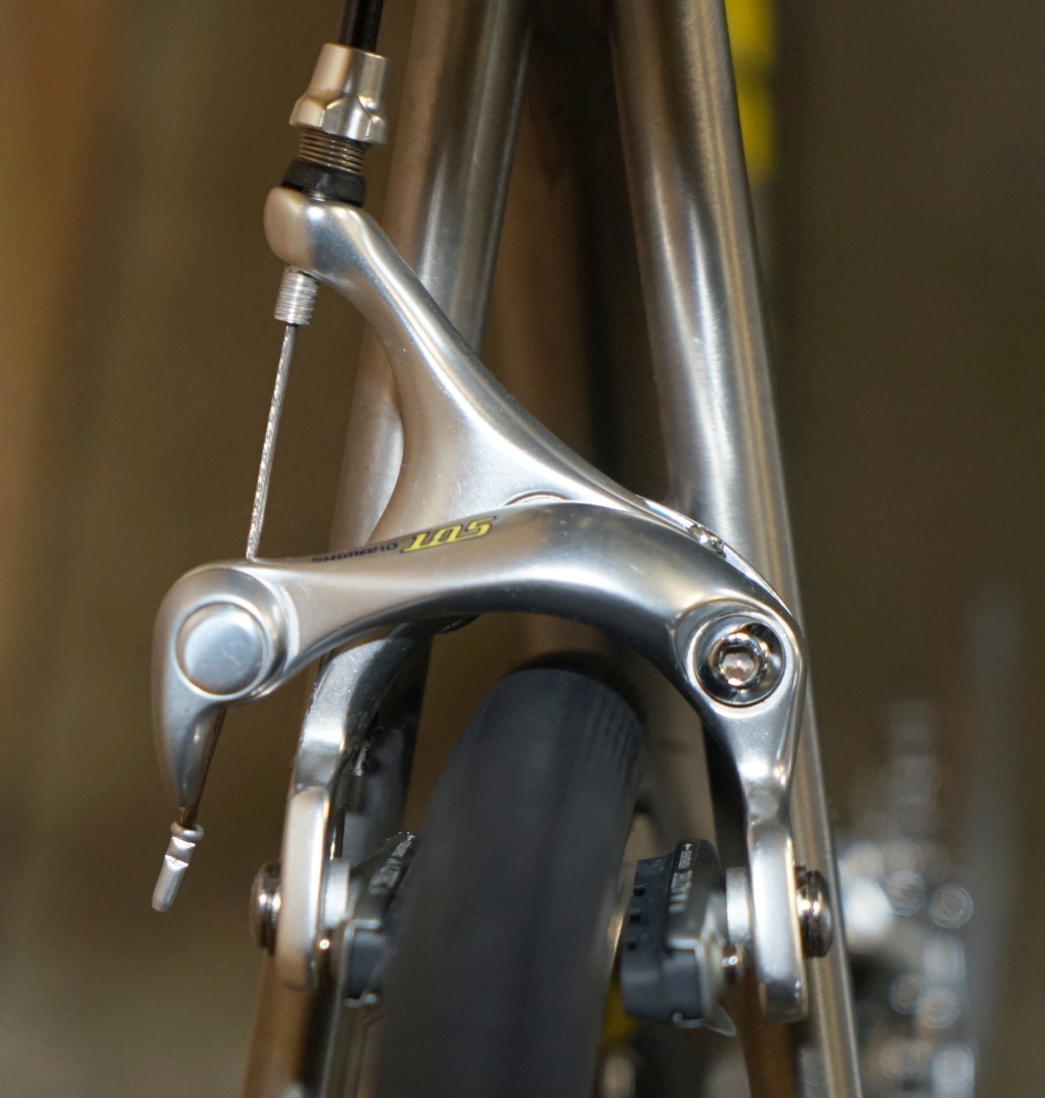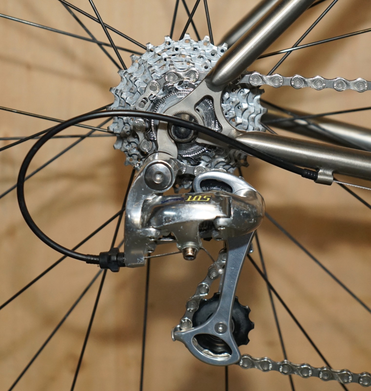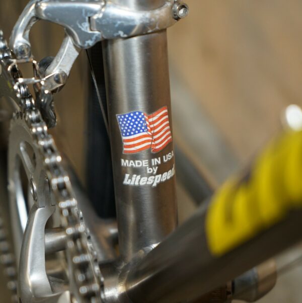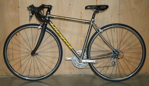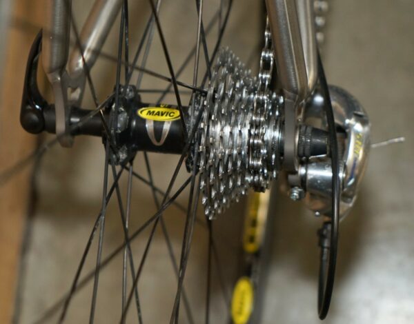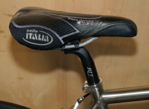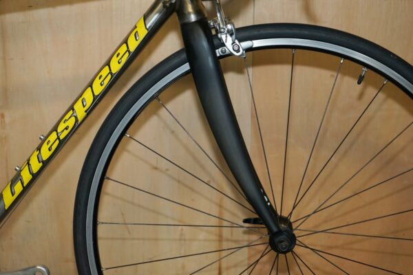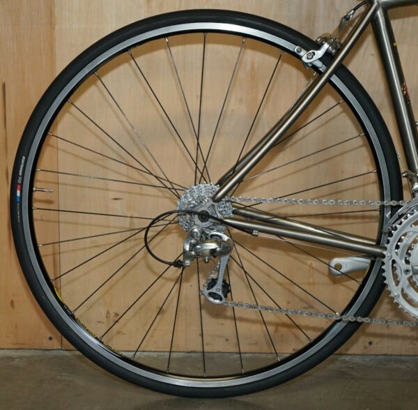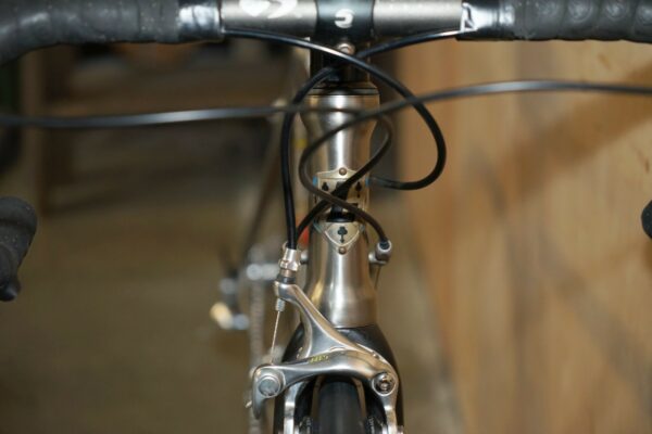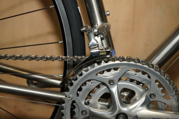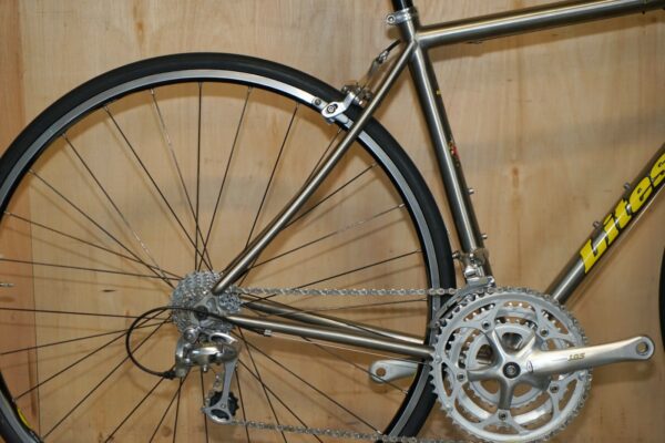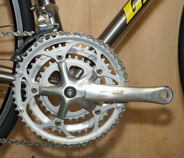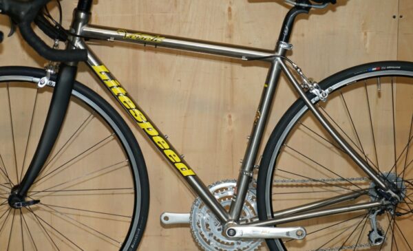 This bike was bought as part of a very interesting bundle, it is a classic Road Racing bike and it comes with the factory specification so full 105 running gear, the owner was a very serious cyclist and had a collection of eight bikes they used regularly. The frame is one of my absolute favorites of all time, I love Litespeed titanium frames especially when they have the wishbone stays which refers to that lovely elegant line along the back. The groupset is top to bottom 105 and its the original yellow label groupset which is very collectable in its own right