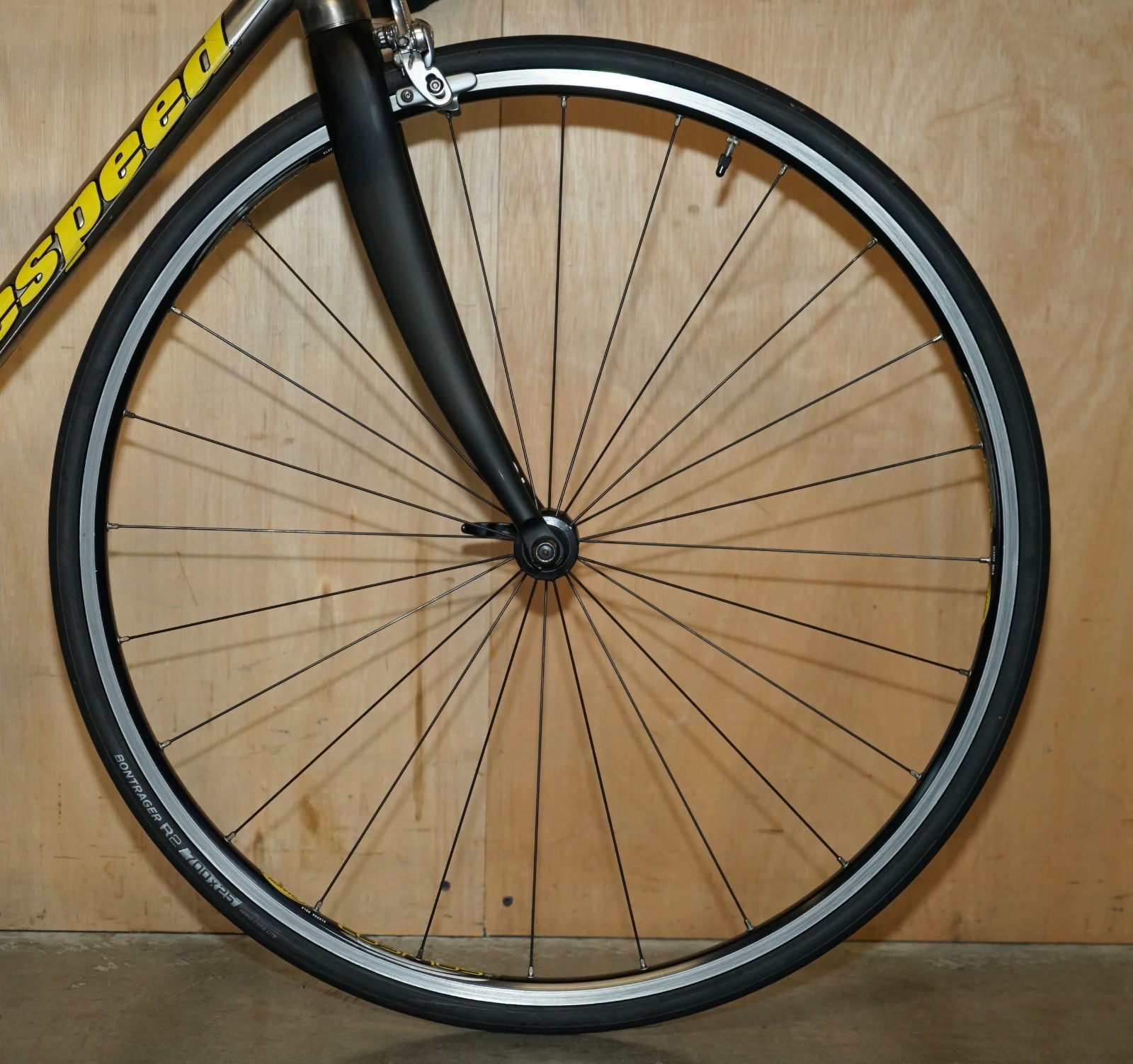 Wheelset:- Mavic Cosmos factory wheelset, spokes 24 front 28 rear, Tyres Bontrager R2
