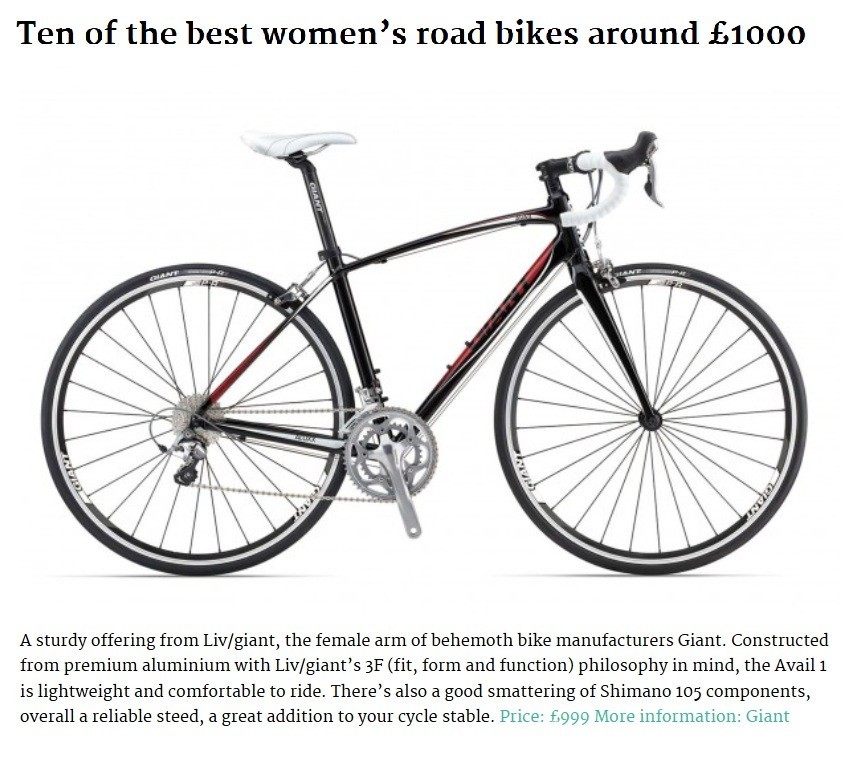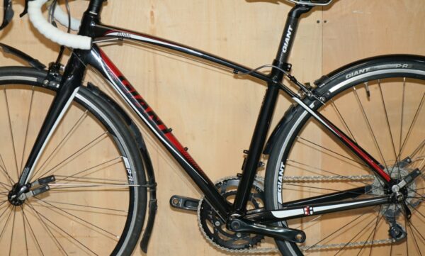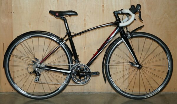 This bike came to me with a selection of lovely women’s road bikes, there are unique touring bikes, titanium road bikes, a really good solid collection from a serious rider. This one is the Giant Avail 1, as mentioned it was ranked 8th on the list of top 10 women’s bikes for under £1000, it has been fitted with full length mudguards and looks to be in ready to go condition having only been lightly used