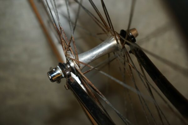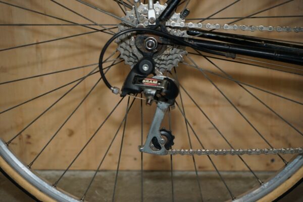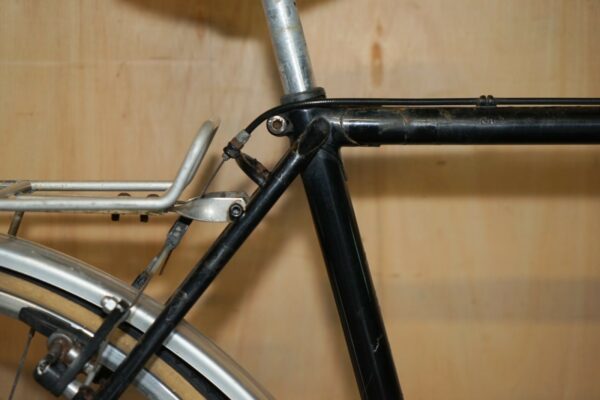 The frame has patina in the form of rust spots and ware and tare all over, I can’t see any dents or cracks and it looks straight and true to me, we have given it a good clean and oiled the chain, most likely it will need servicing as I have never ridden this bike and it had sat for some time unused, so the gears and brakes will most likely need adjusting, the perishable items like bar tape and tires made need replacing, this has been reflected in the sale price