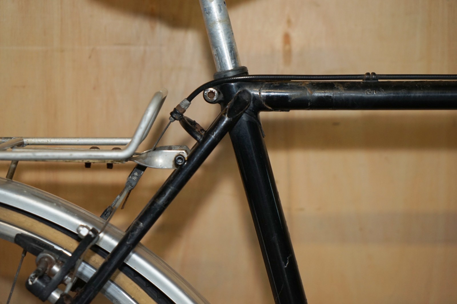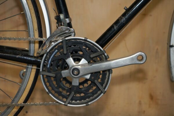 This bike was bought as part of a very interesting bundle, it is what’s referred to as a winter trainer, for those of use looking for a solid work horse, its a touring bike so has a pannier and full sized mudguards, its also what’s called a pub bike which means you can park it up anywhere and no one is going to steal it, there is nothing of hugely intrinsic value here so its a work horse piece, ideal for getting you from A to B with no dramas, you won’t be the prettiest bike on the road or the fastest but this will get you there