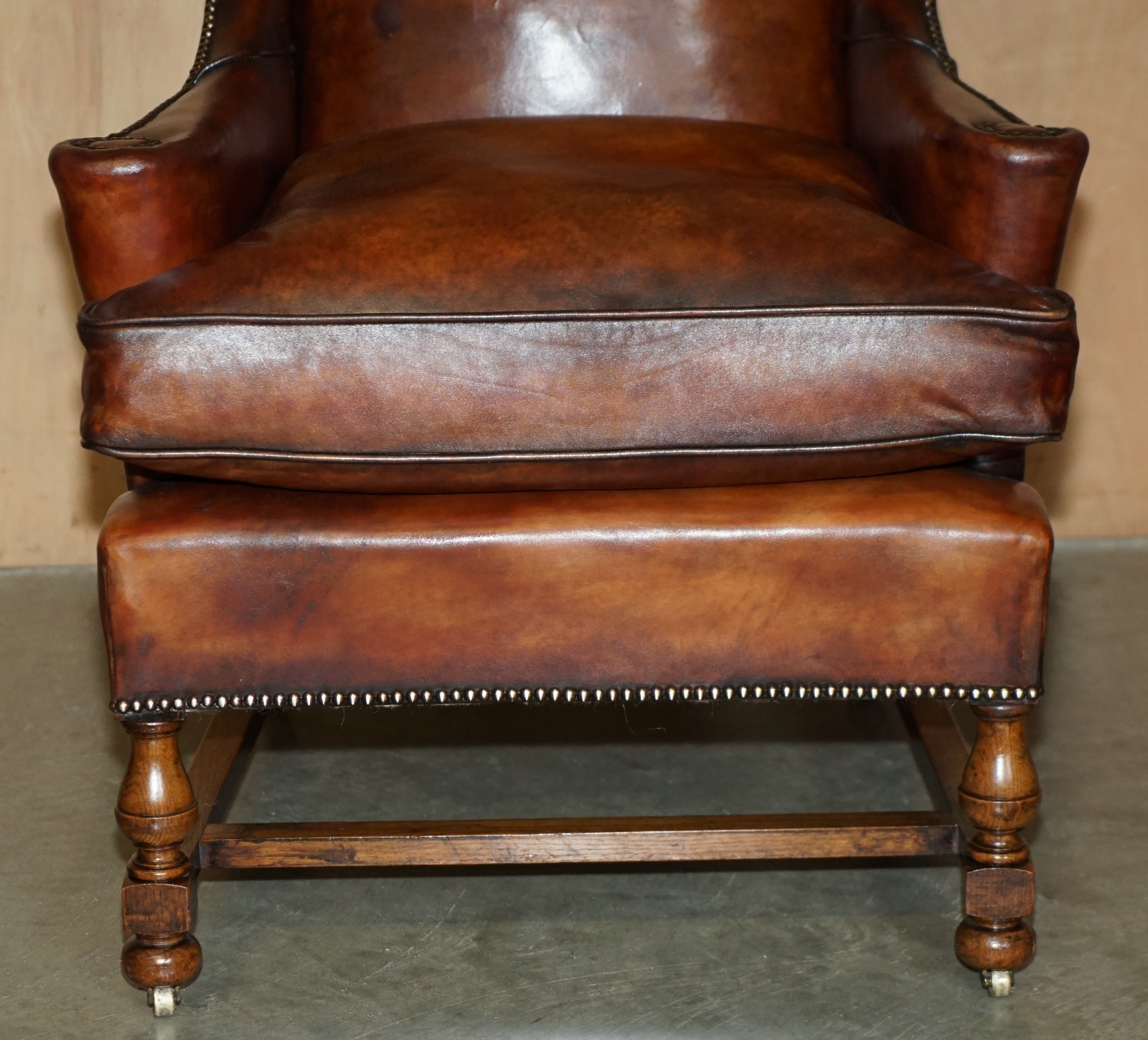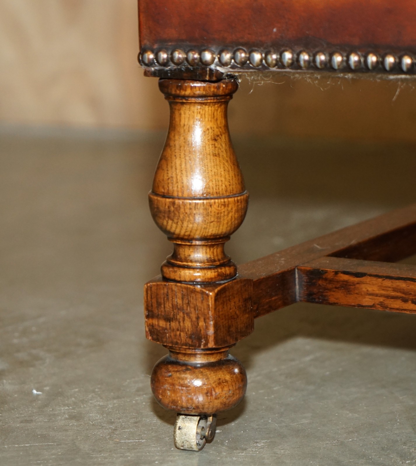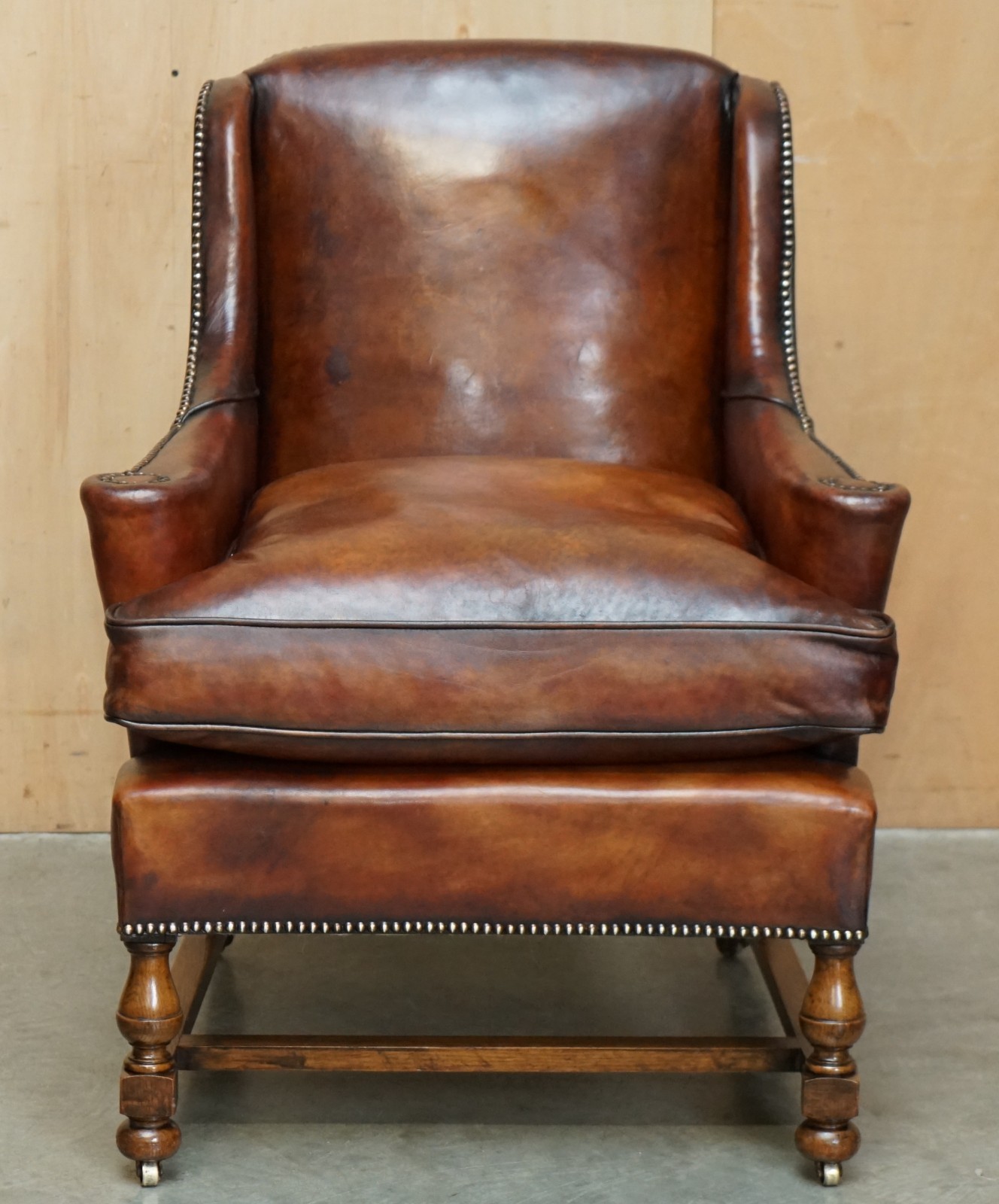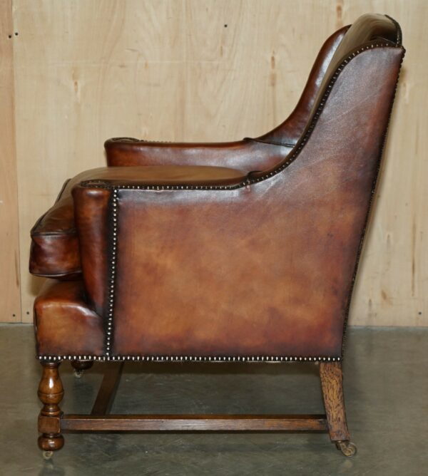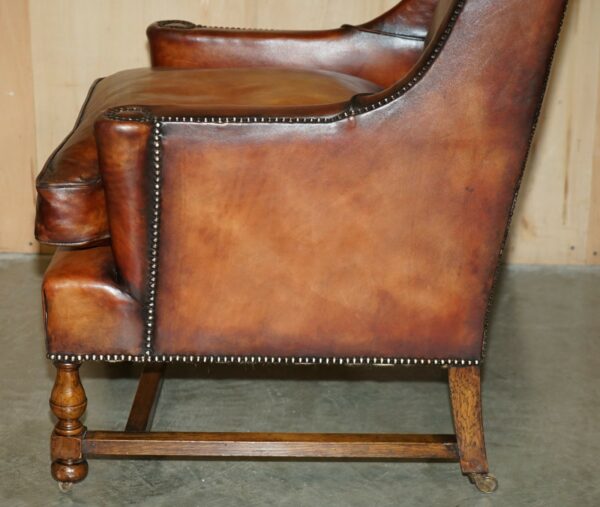 SUBLIME ANTIQUE RESTORED ENGLISH OAK & HAND DYED LEATHER WILLIAM MORRIS ARMCHAIR