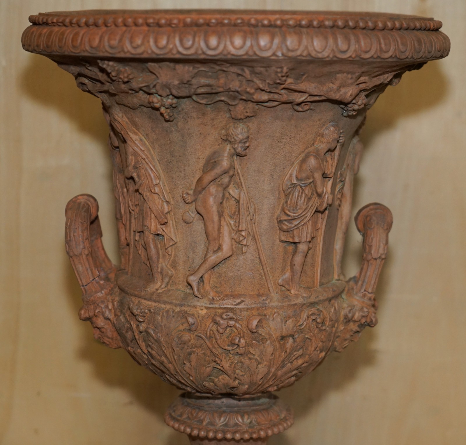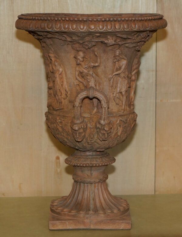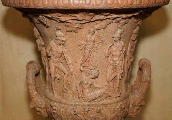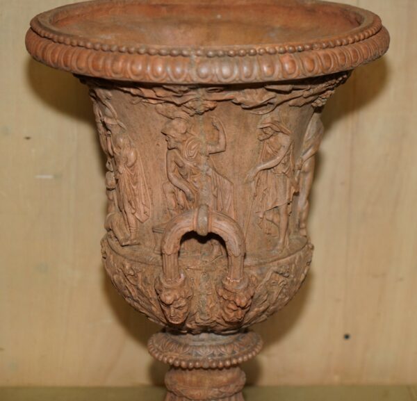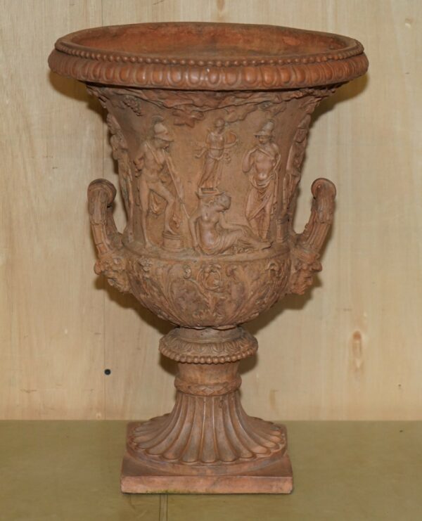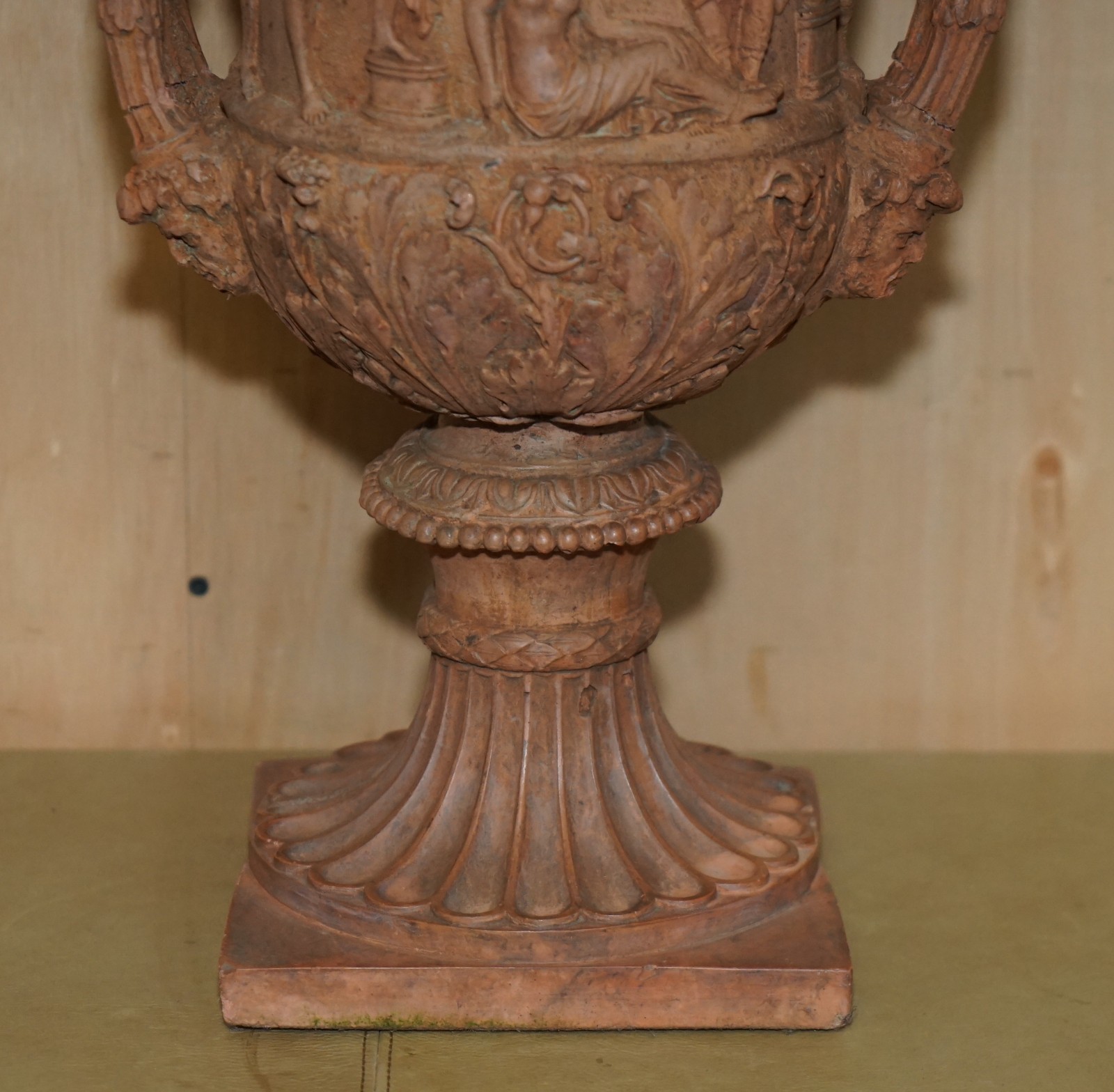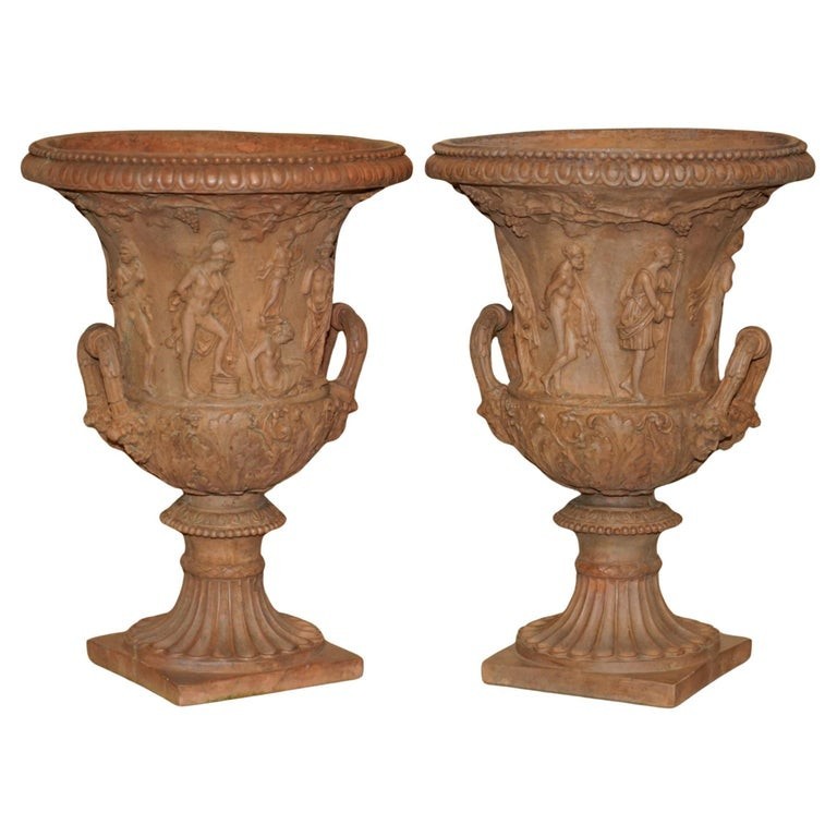 ANTIQUE PAIR OF 1880 MEDICIS FRESCOES OF GREEK MYTHOLOGY TERRACOTTA PLANT VASES