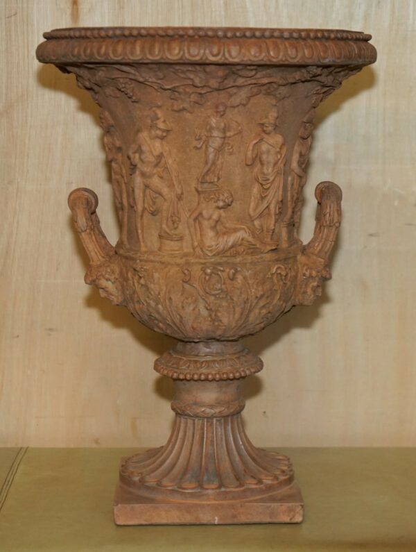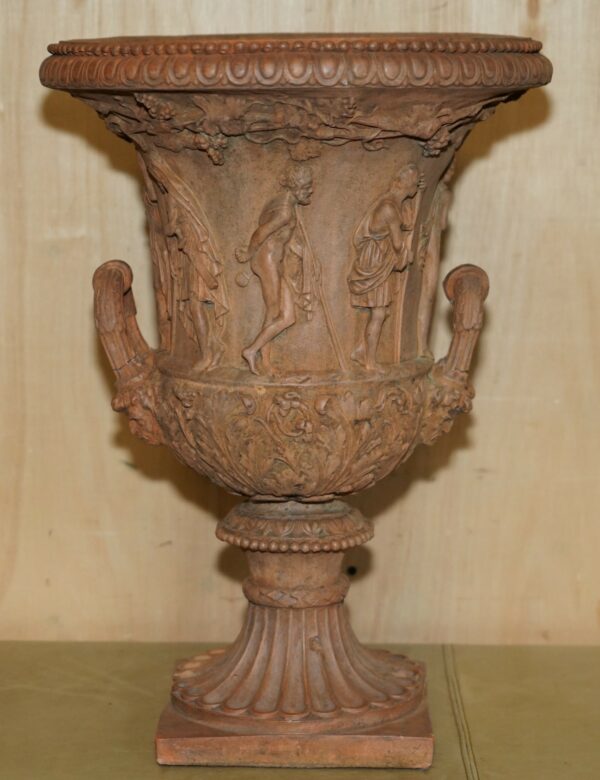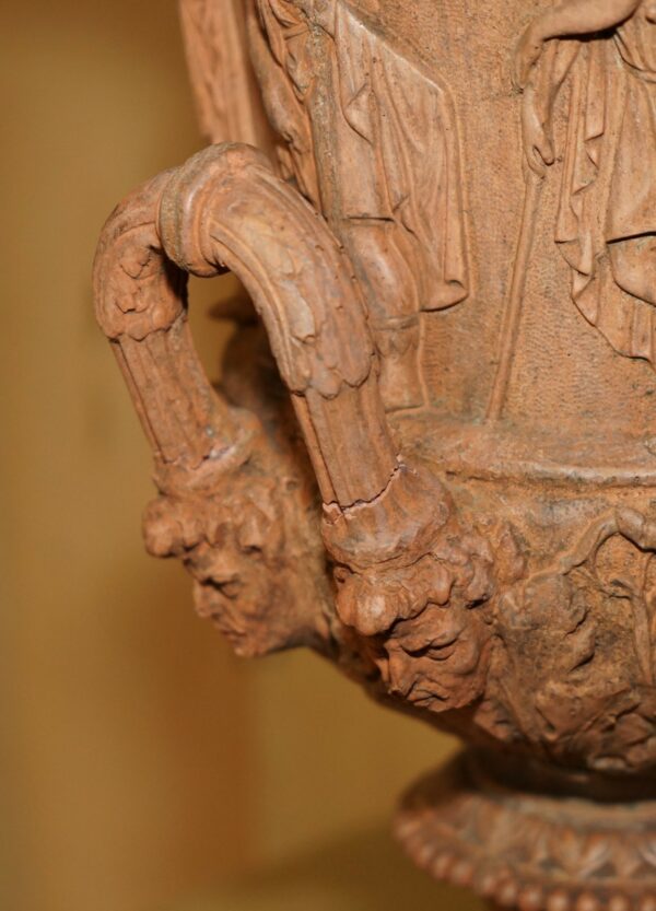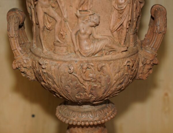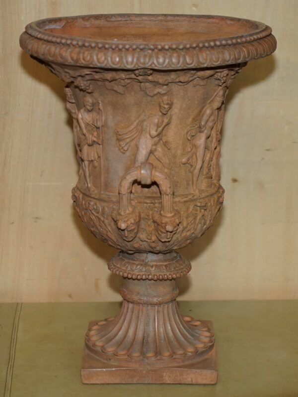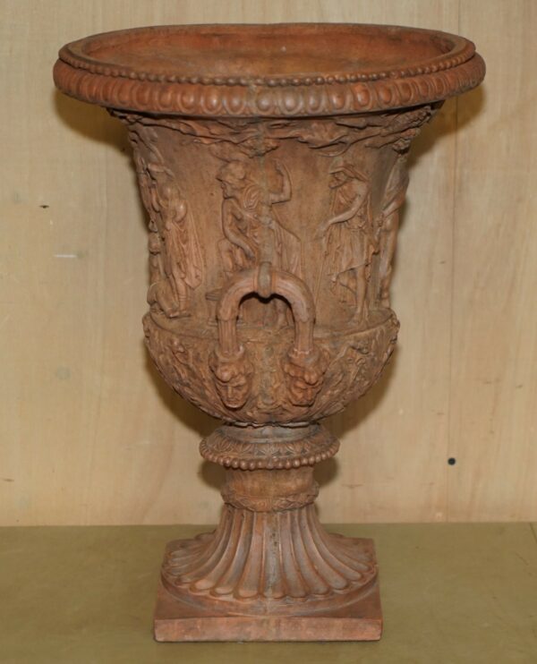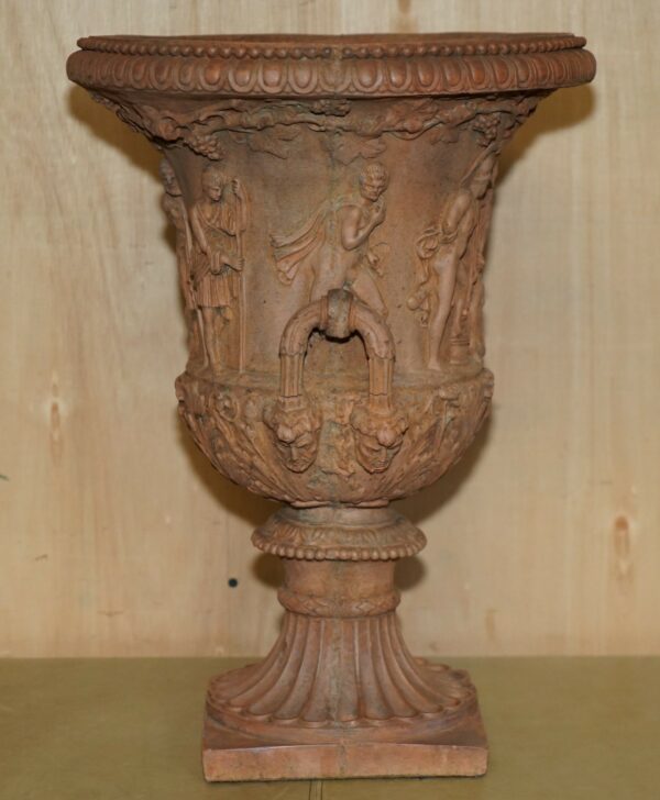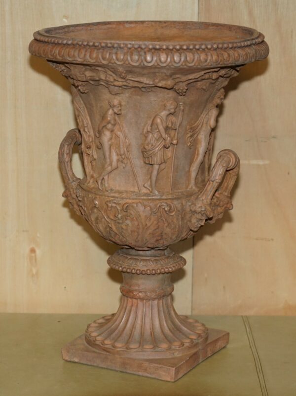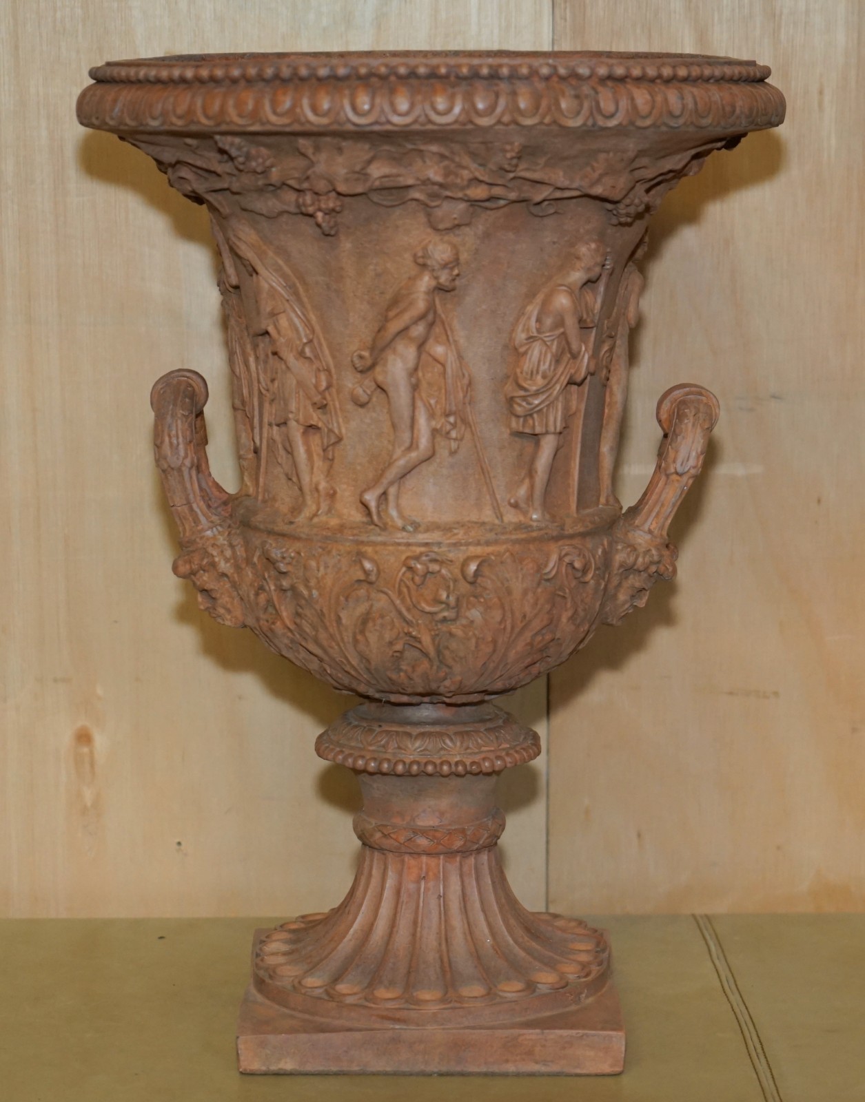 ANTIQUE PAIR OF 1880 MEDICIS FRESCOES OF GREEK MYTHOLOGY TERRACOTTA PLANT VASES