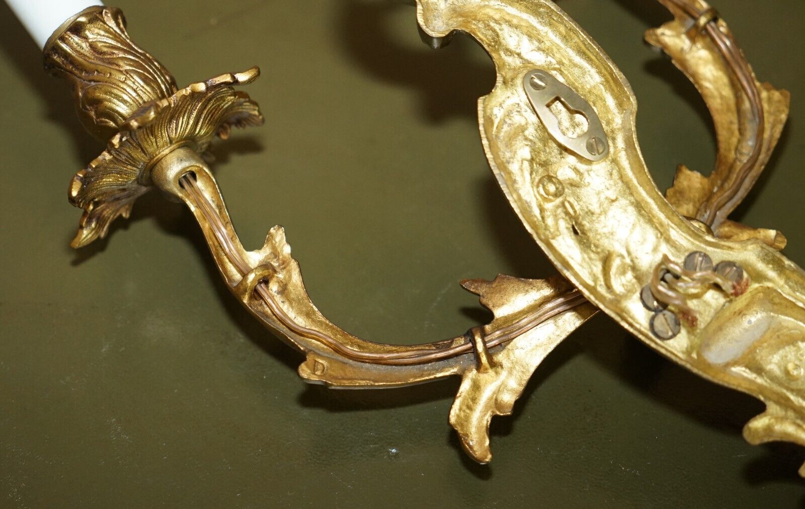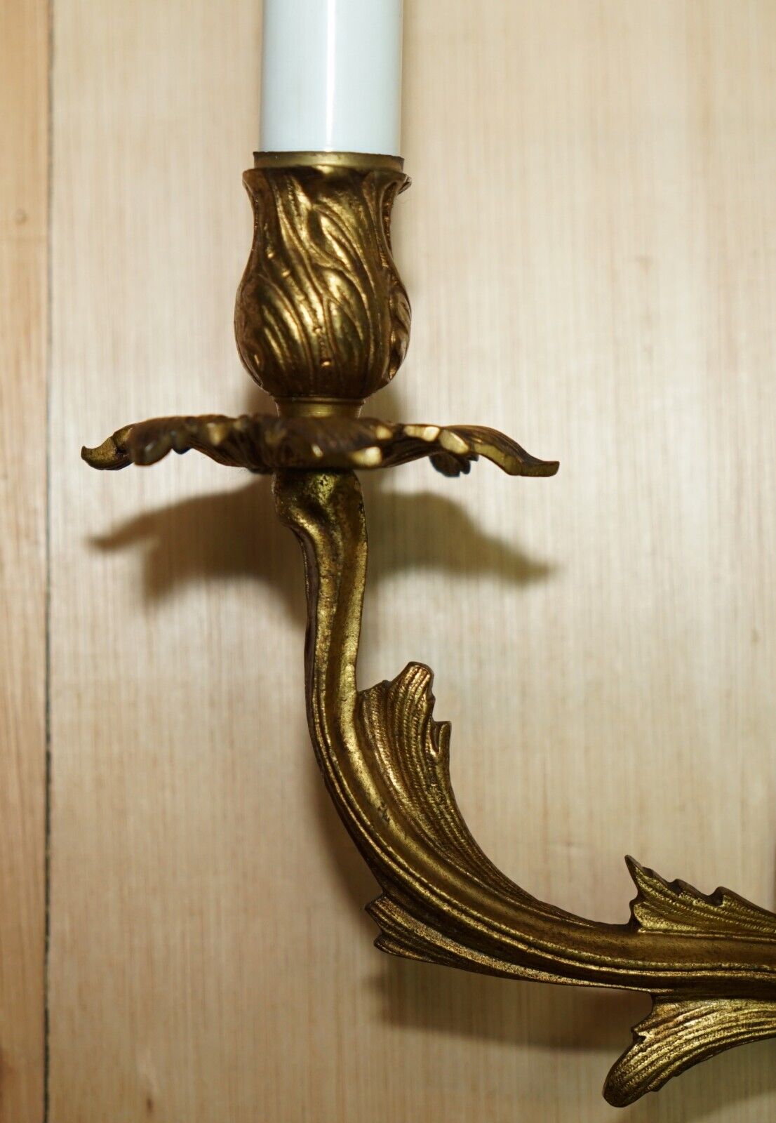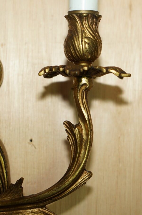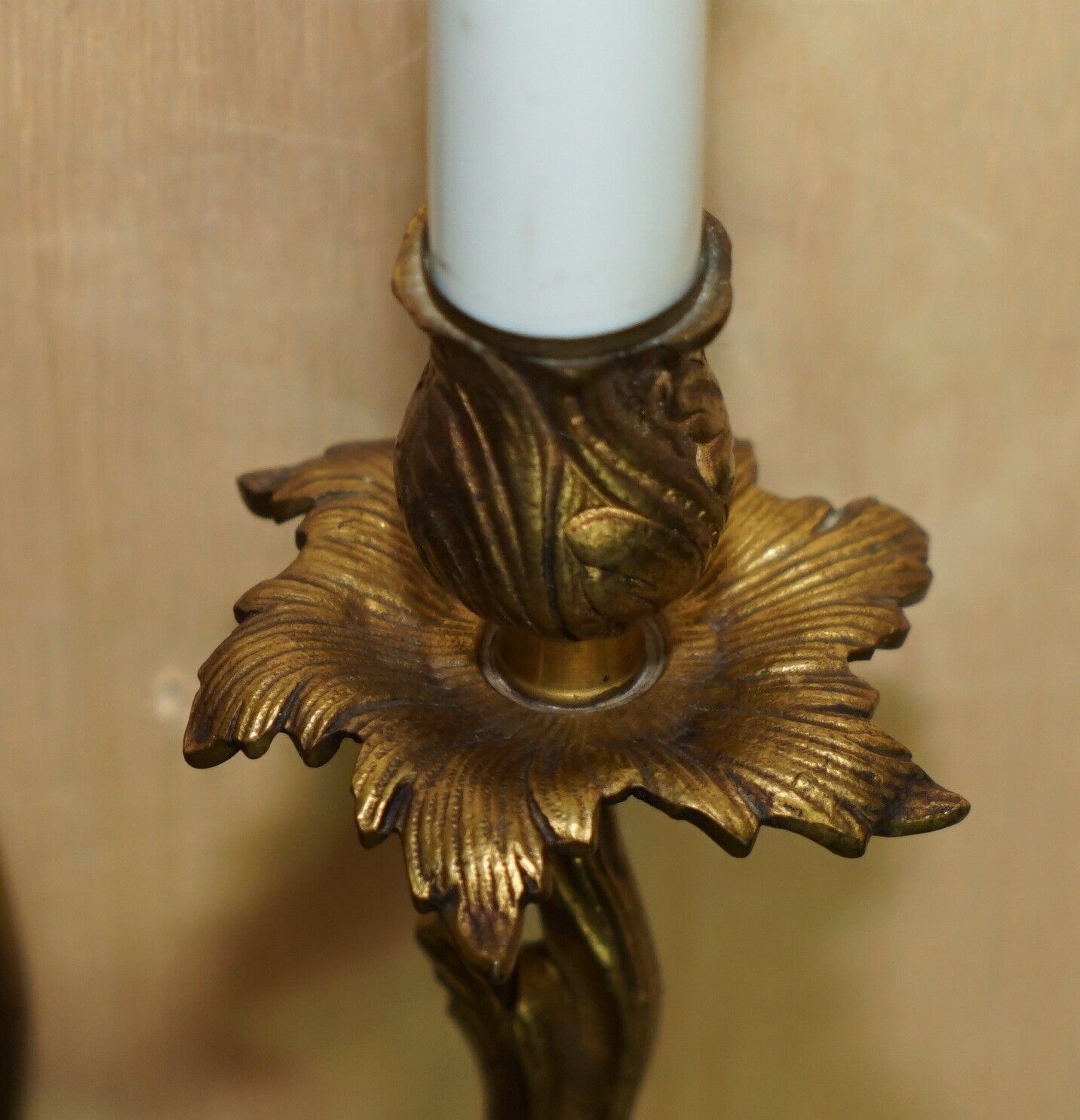 PAIR OF STUNNING ANTIQUE FRENCH 1920'S GILT BRONZED CANDLE SCONCE WALL LIGHTS