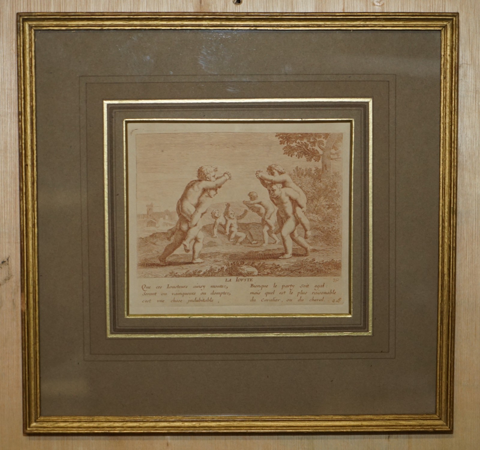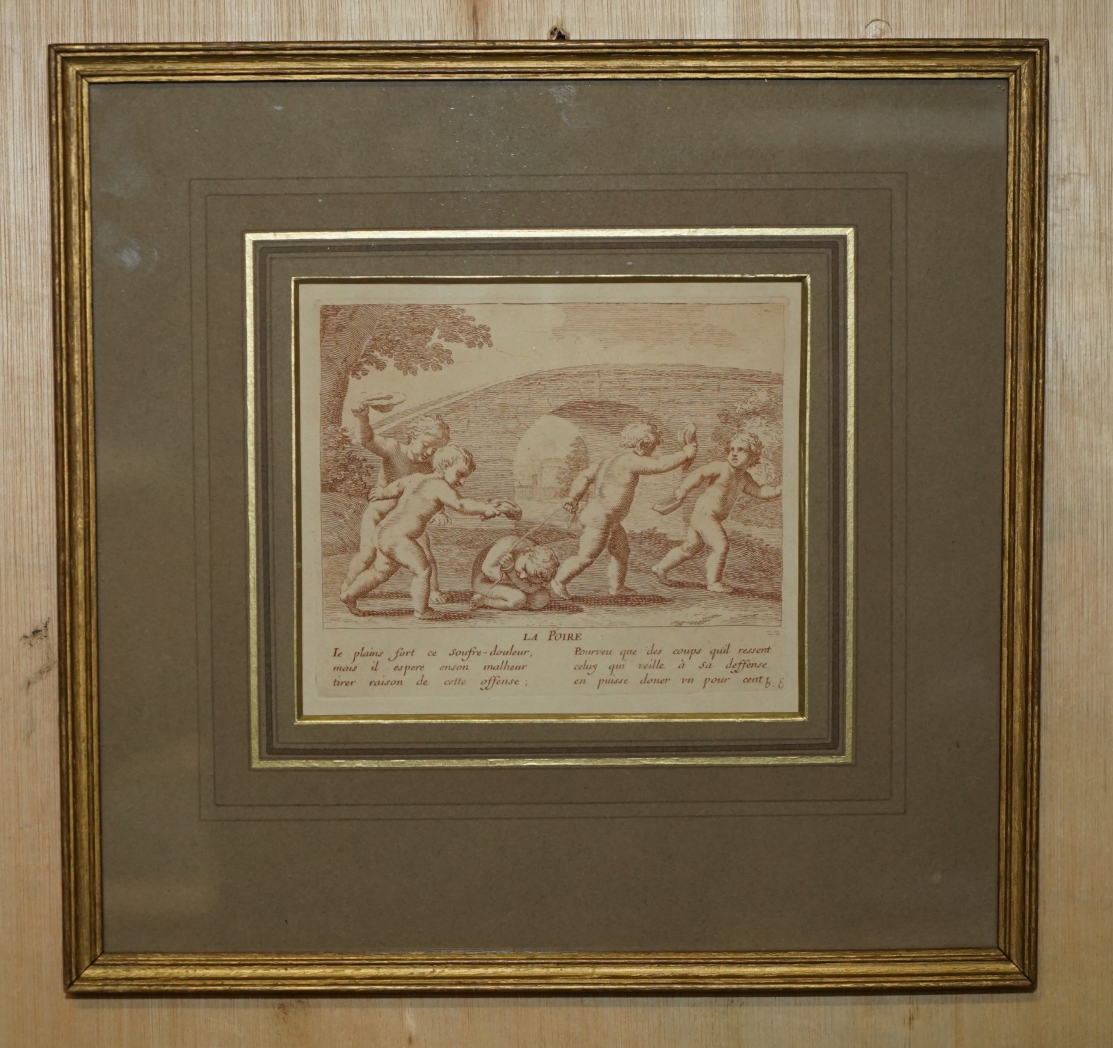 1750 SUITE OF 12 COPPER PLATE ENGRAVINGS OF SEPIA OF AMORINI "CHERUBS AT PLAY"