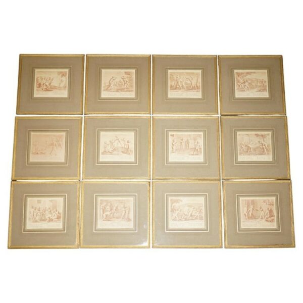 Royal House Antiques is delighted to offer for sale this lovely collectable suite of twelve original copper plate prints of Sepia of Amorini “Cherubs at Play” circa 1750