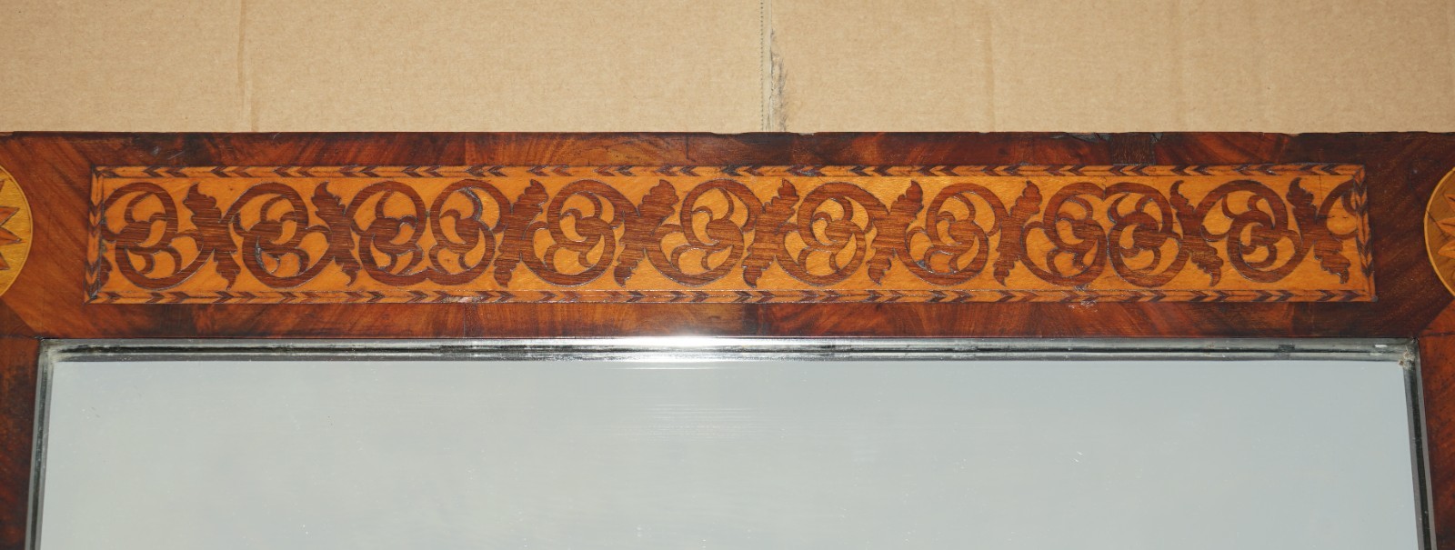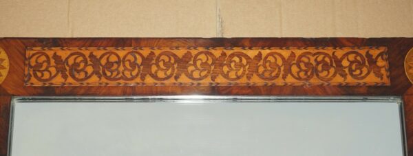 ORNATELY DECORATED ANTIQUE DUTCH MARQUETRY INLAY WALL MIRROR SUBLIME DETAILINGS