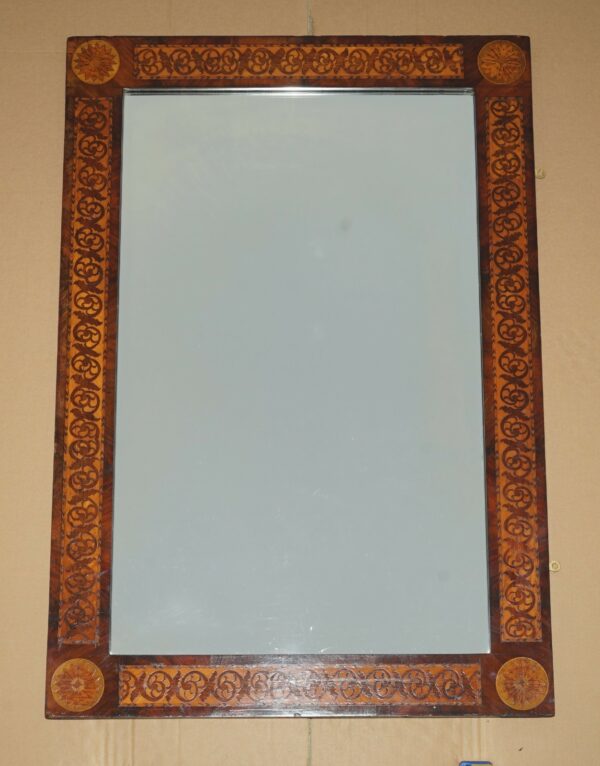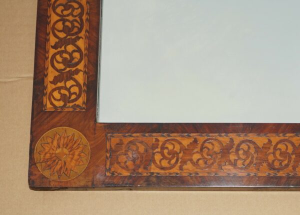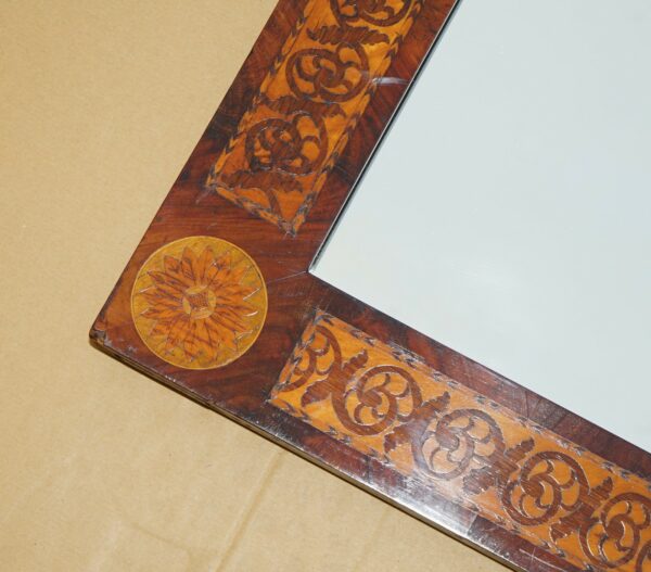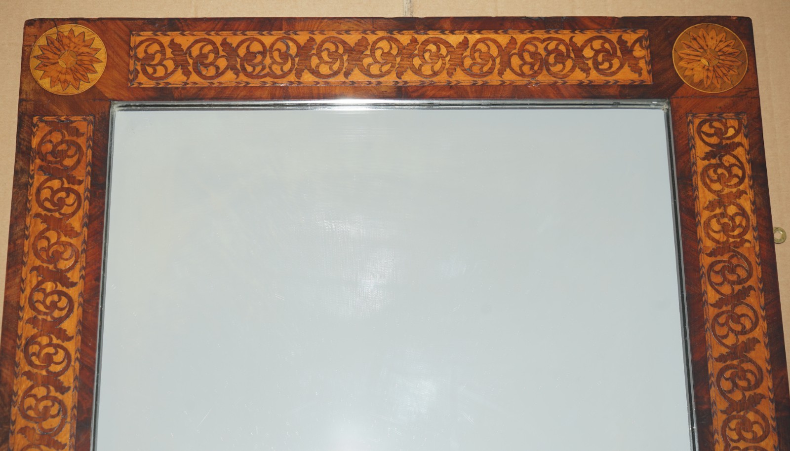 A very good looking and decorative wall mirror, the inlay is sublime as is the mirror plate with is nicely aged. The mirror boasts beautifully crafted Dutch inlay all around