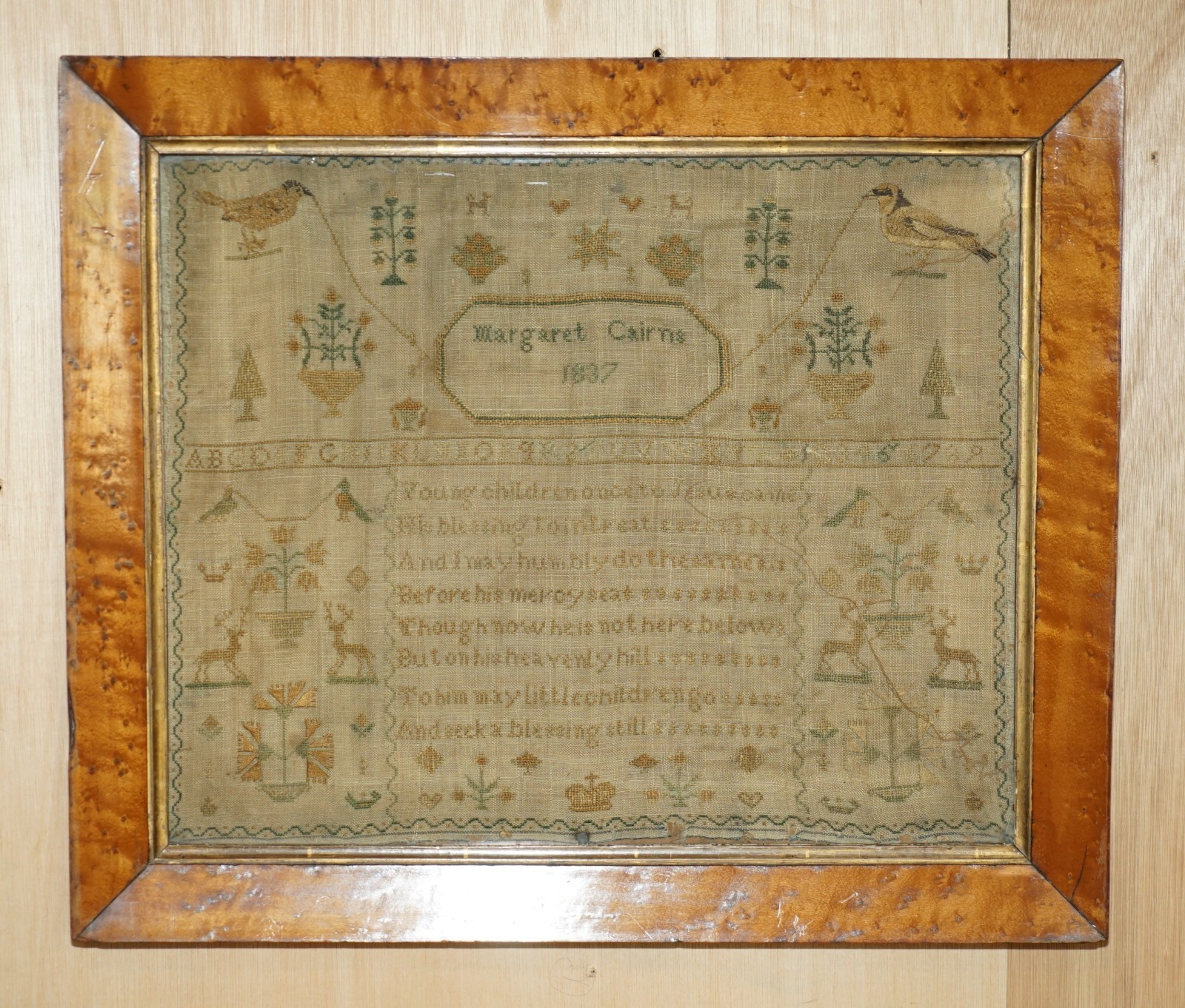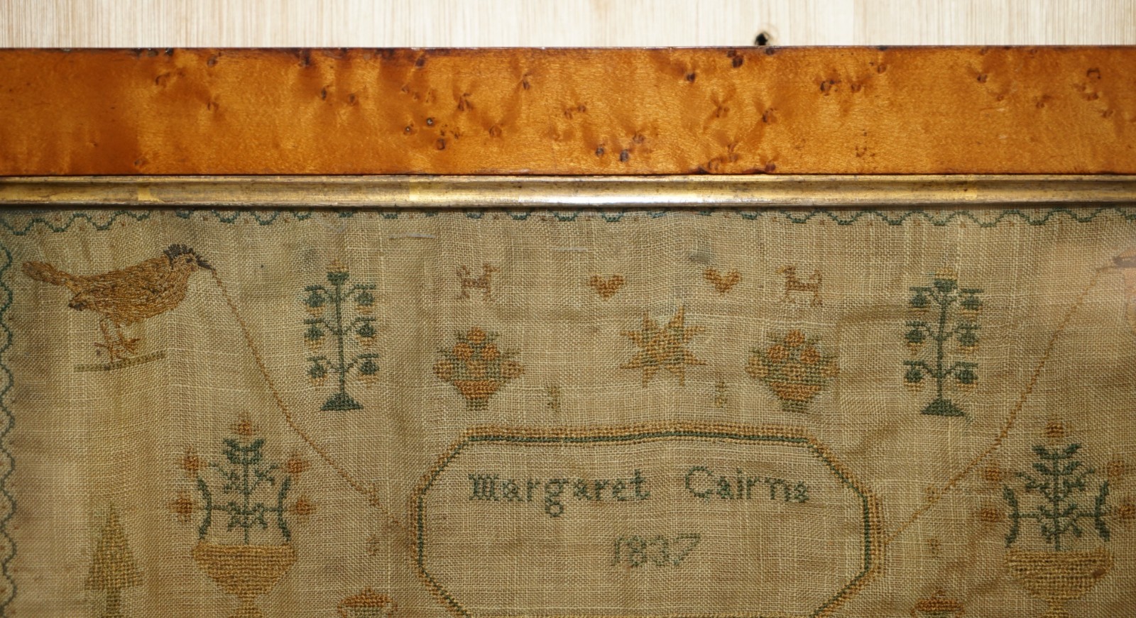 ANTIQUE 1837 MARGARET CAIRNS KING WILLIAM IV NEEDLE WORK TAPESTRY SAMPLER