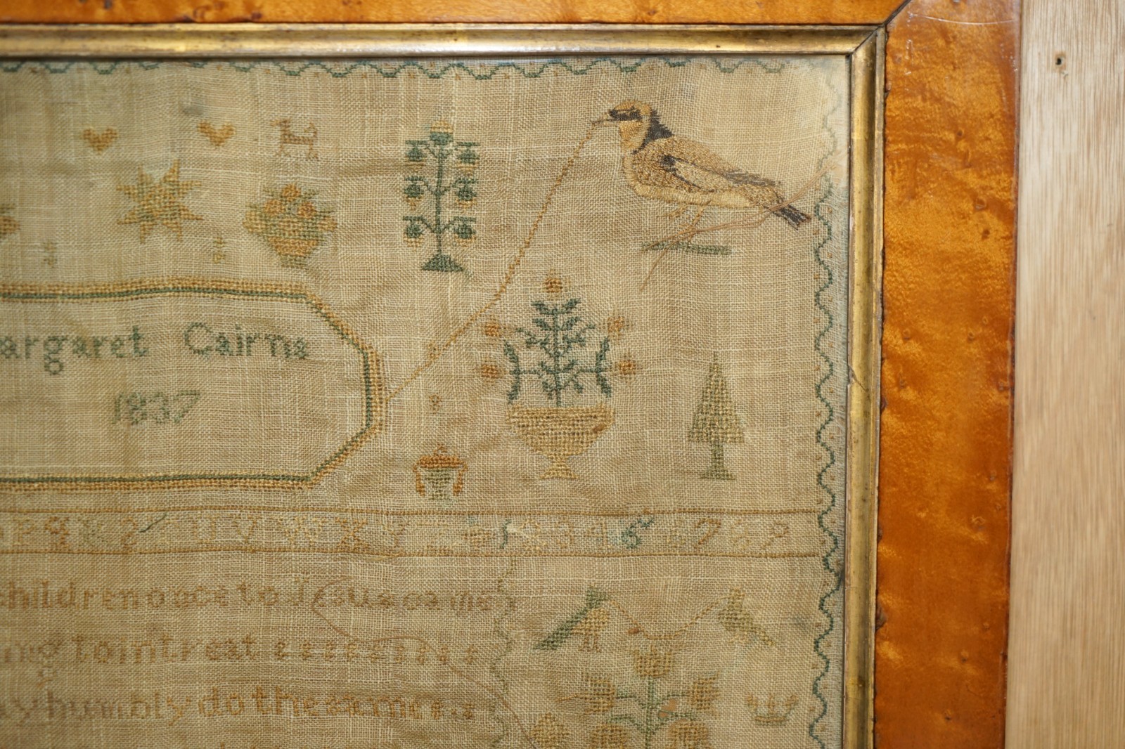 Royal House Antiques is delighted to offer for sale this rather stunning, 1837 dated needlework sampler made during the reign of King William IV by Margaret Cairns
