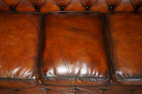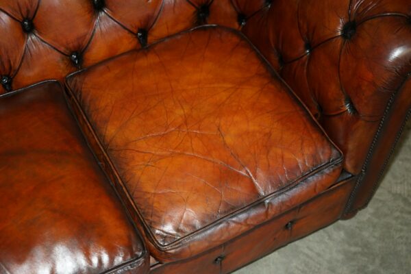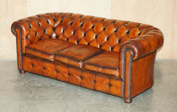 Royal House Antiques is delighted to offer for sale this exceptionally rare original 1930’s Whiskey brown leather Chesterfield club sofa in restored condition with feather filled cushions