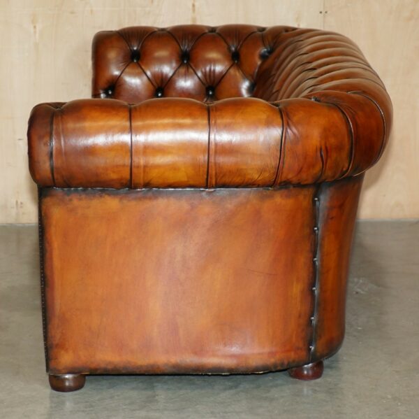 1930'S HAND DYED RESTORED WHISKEY BROWN LEATHER CHESTERFIELD TUFTED CLUB SOFA