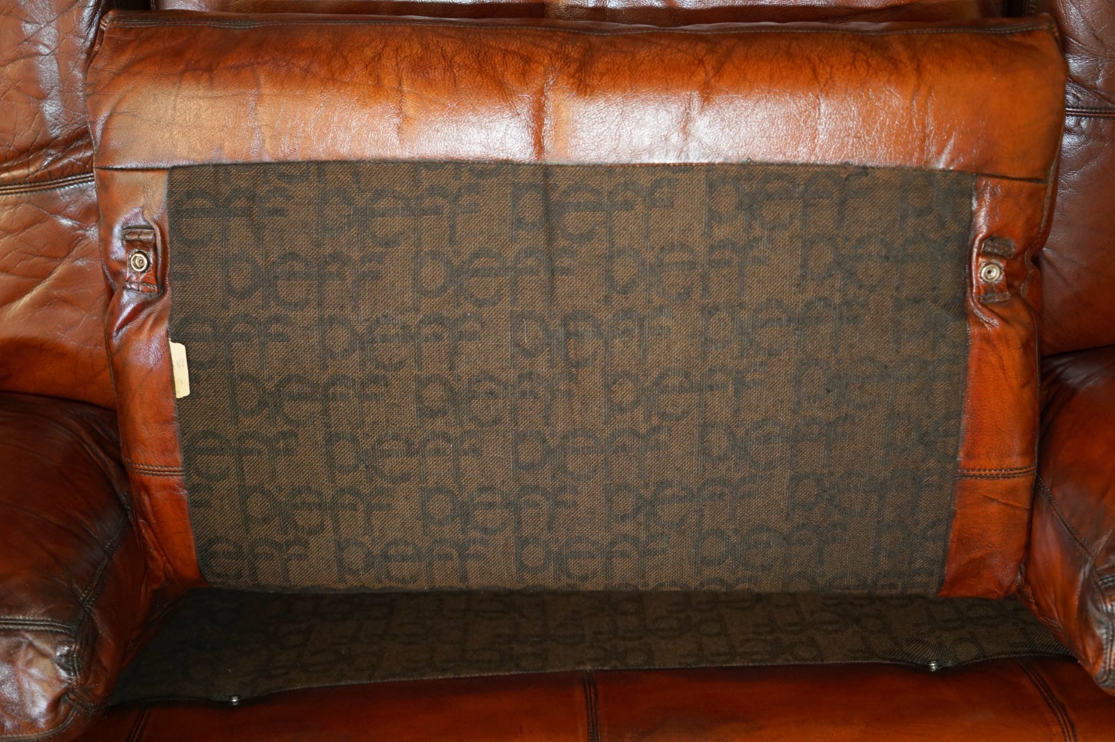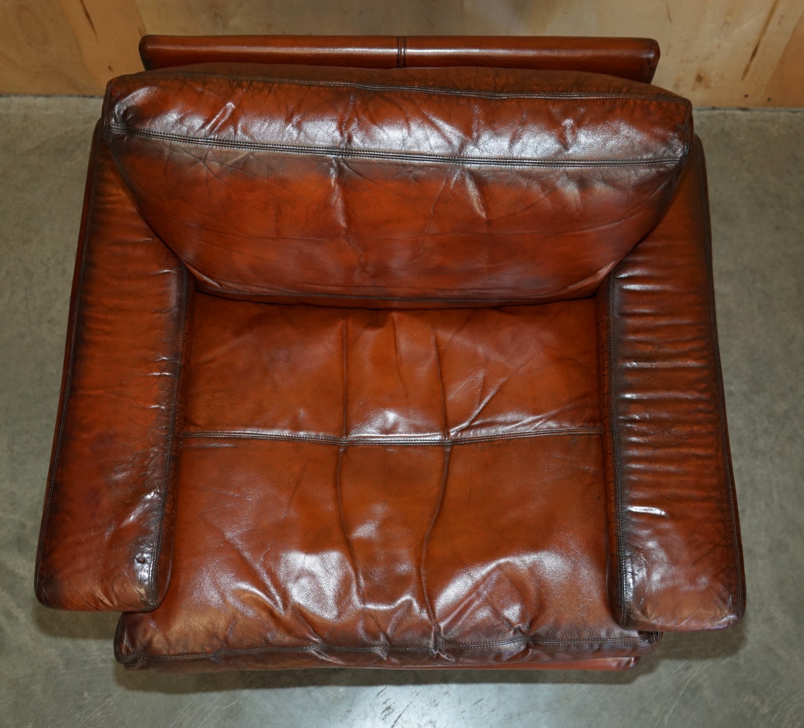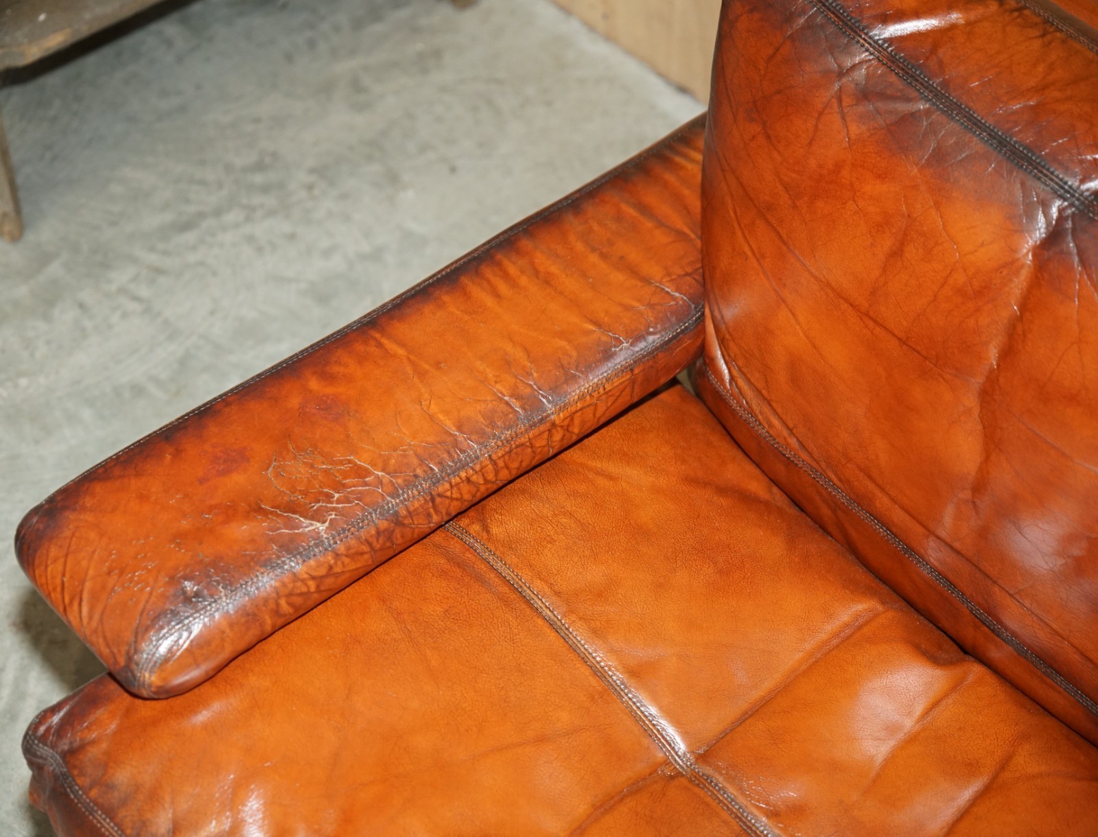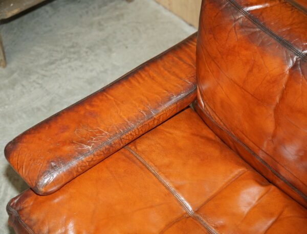 The suite has been fully restored to have all the chrome professionally polished, the leather has been washed back, hand dyed six times, antiqued, sealed waxed down and polished, it is in perfect MCM condition throughout