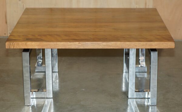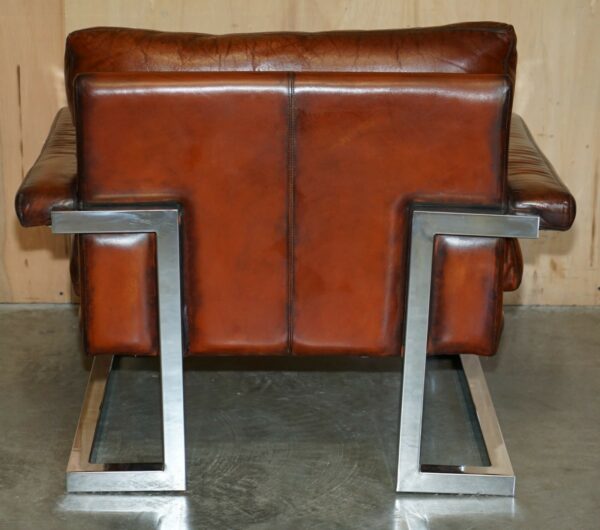 Royal House Antiques is delighted to offer for sale this absolutely stunning, exceptionally rare, fully restored, Tim Bates for Pieff Mandarin suite in hand dyed brown leather with oversized chrome frames and a Rosewood top to the table