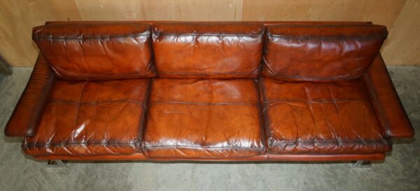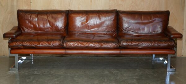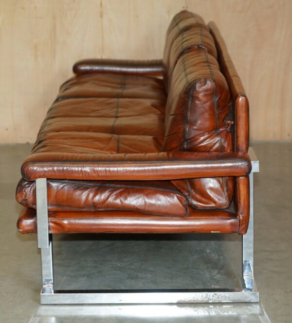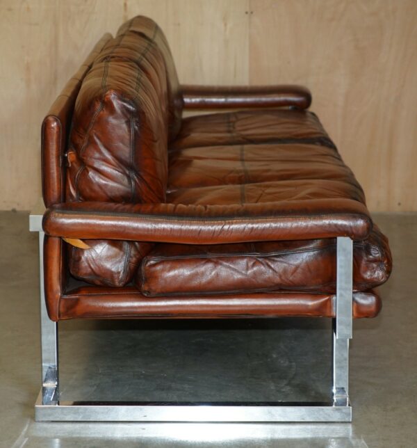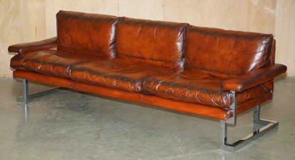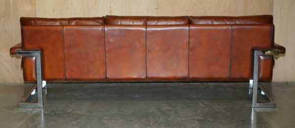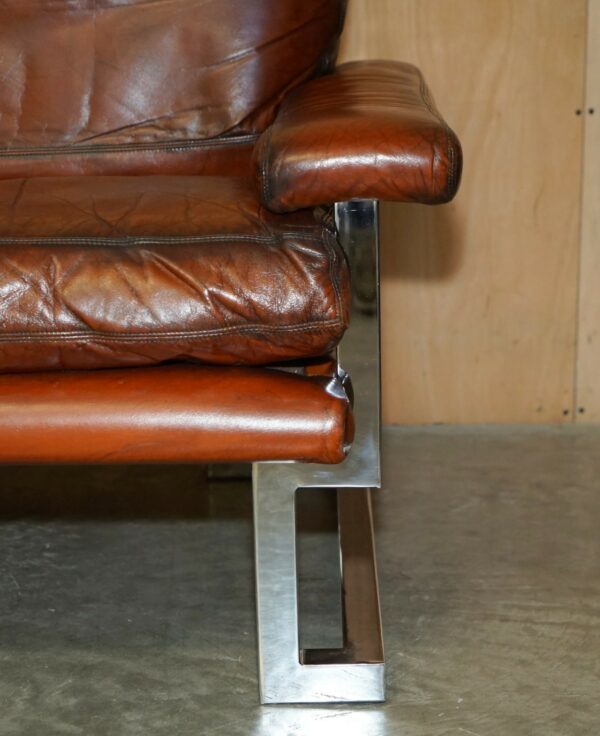 RESTORED TIM BATES PIEFF MANDARIN LEATHER CHROME & ROSEWOOD SOFA ARMCHAIR SUITE