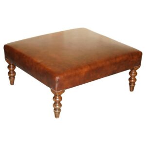LOVELY VINTAGE HAND DYED BROWN LEATHER GEORGE SMITH LARGE 2 PERSON FOOTSTOOL